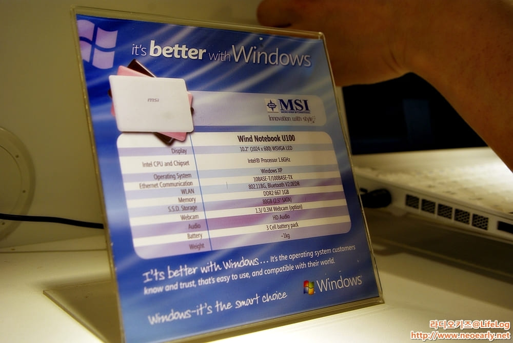 MSI์ Wind๋ฅผ ๋น๋กฏํด ๋ค์ํ OQO๋ Gigabyte, BenQ, Kjs, MEDION, POSITIVO ๋ฑ ์ด๋ฆ๋ ์์ํ ์ ์ฒด๋ค์ ๋ฏธ๋ ๋ ธํธ๋ถ์ด ๋ถ์ค์ ํ์ชฝ์ ์ฐจ์งํ๋ฉฐ ๋ฐฉ๋ฌธ๊ฐ๋ค์๊ฒ ์์ฉ์ ๊ณผ์ํ๊ณ ์์๋ค.