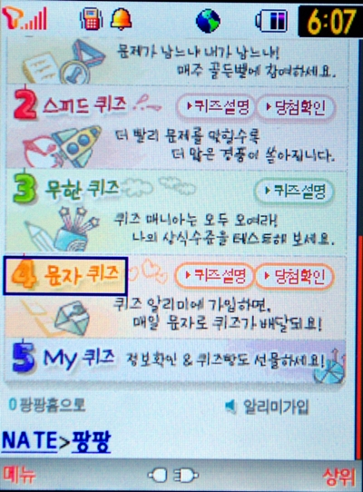 ๊ทธ๋ฆฌ๊ณ ๋ง์ง๋ง '๋ฌธ์ ํด์ฆ'์ ๊ฒฝ์ฐ ํด๋์ ํ ๋ฌธ์๋ฉ์์ง๋ก ๋ณด๋ด์ ธ์จ ํด์ฆ์ ๋ต์ ํ๋ ๋ฐฉ์์ด๋ค. ๊ทธ๋์ ๋ฌธ์ ํด์ฆ์ ์ฐธ์ฌํ๊ณ ์ถ์ผ๋ฉด '์๋ฆฌ๋ฏธ'๋ฅผ ์ ์ฒญํด์ผ ํ๋๋ฐ ์๋ฆฌ๋ฏธ๋ ๋ชจ๋ฐ์ผ ๋ค์ดํธ์ ์ฌ๋ฌ ์๋น์ค ์ค ์ํ๋ ์ ๋ณด๋ง ๋ฐ์๋ณผ ์ ์๋ Pushํ ์๋น์ค๋ก ํด์ฆ ์ธ์๋ ์ฌ๋ฌ ๊ฐ์ง ์ ๋ณด๋ฅผ ๋ฐ์๋ณผ ์ ์๋ค.