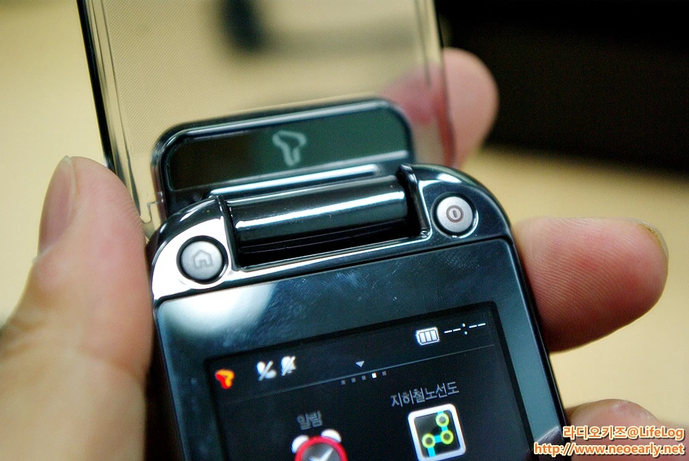 ์ผํธ์๋ ์ด์ดํฐ๊ณผ ์ถฉ์ ์ฉ ์ ๋๋ฅผ ์ฐ๊ฒฐํ ํฌํธ์ ์/ํ ๋ฒํผ, ํ๋ ๋ฒํผ ๋ฑ์ด ์๋ฆฌํ๊ณ ์๋ค. ์ถฉ์ ์ฉ ์ ๋์ ๊ฒฝ์ฐ 2008๋