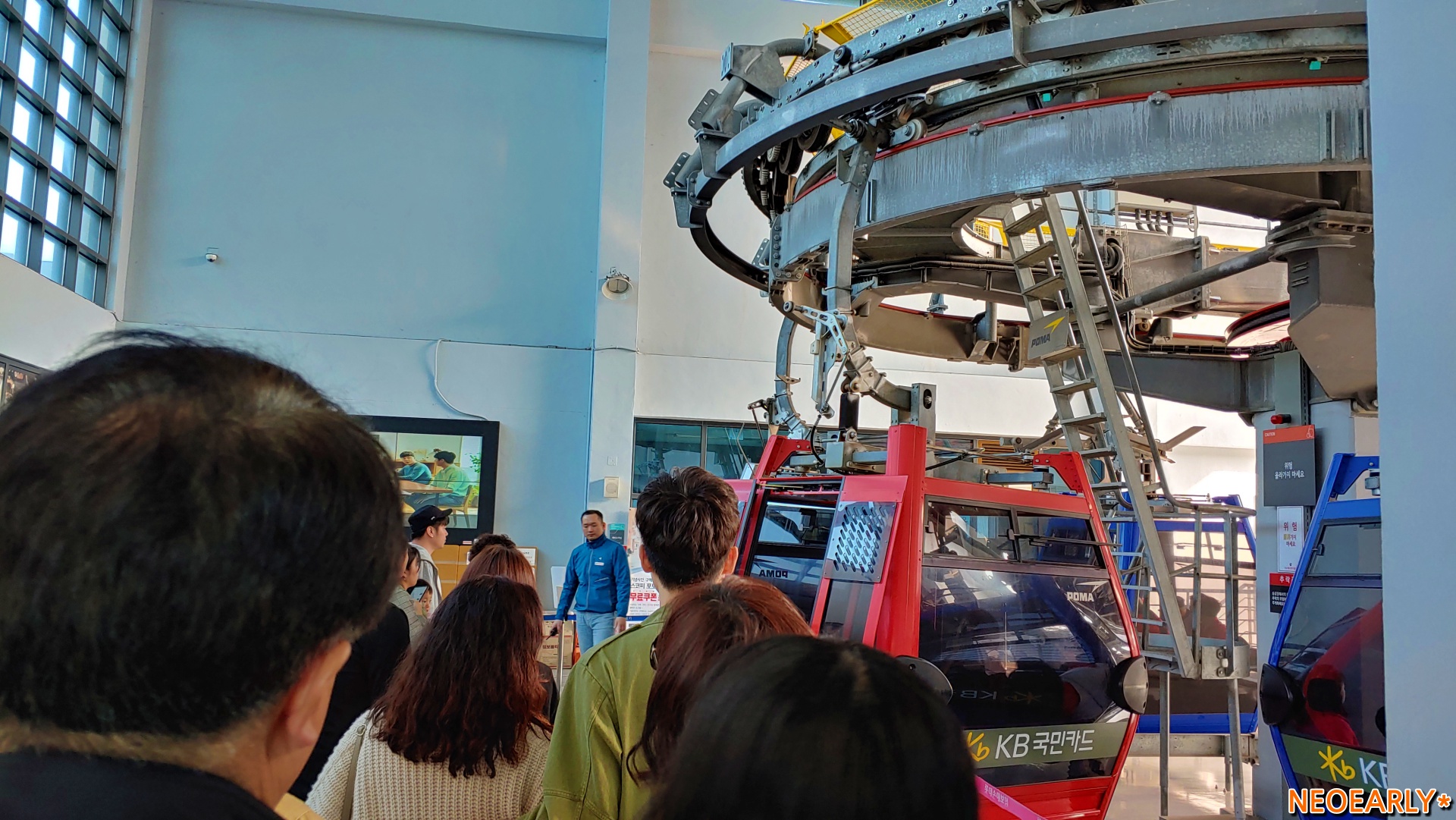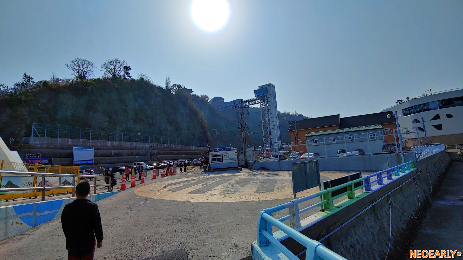 ํฐ์ผ์ ๋๊ณ 2์ธต์ ์ฌ๋ผ๊ฐ๋ฉด ํ์น์ฅ์ด ๋์ค๋๋ฐ ํ์น์ฅ์์ ์ผ์ด๋ธ์นด์ ๋ชธ์ ์ค์ผ๋ฉด 7๋ถ์ฏค ์ฌ์ ์๋ฐ๋ค๋ฅผ ๋ ์๊ฐ ์ ์์ต๋๋ค. ๋ฐ๋ฅ์ด ํฌ๋ช