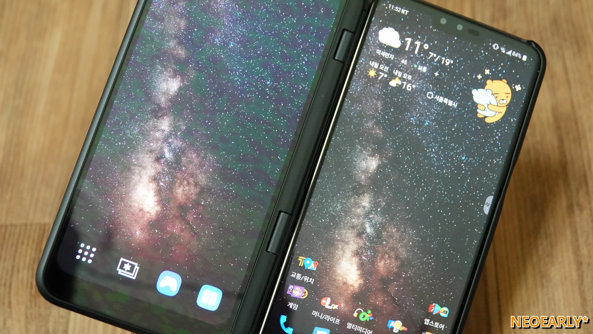 ์ด๋์ง ์ต์ํ ๋ชจ์ต์ด์ง๋ง, ๋์์ 2๊ฐ์ ์ฑ์ด๋ ์๋น์ค๋ฅผ ์ด์ฉํ ์ ์๋ ๋์ผ ์คํฌ๋ฆฐ์ด๋ ์๋ก์ด ๊ฐ๋ฅ์ฑ์ ์ง์ํ๋ฉด์ ๋ณดํต์ ๋ค๋ฅธ ์ค๋งํธํฐ๊ณผ๋ ํ์คํ ๋ค๋ฅธ ๋๋์ ์ ํด์ฃผ๋ ์ ๋