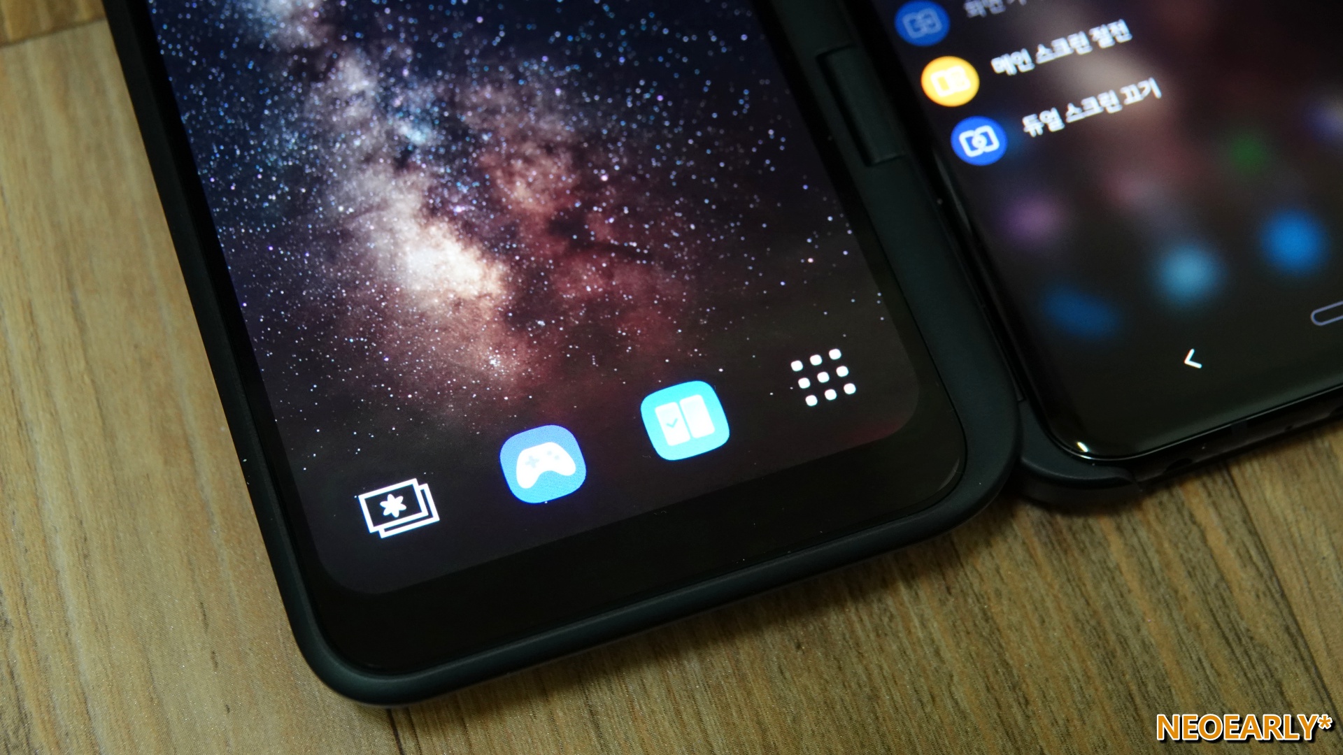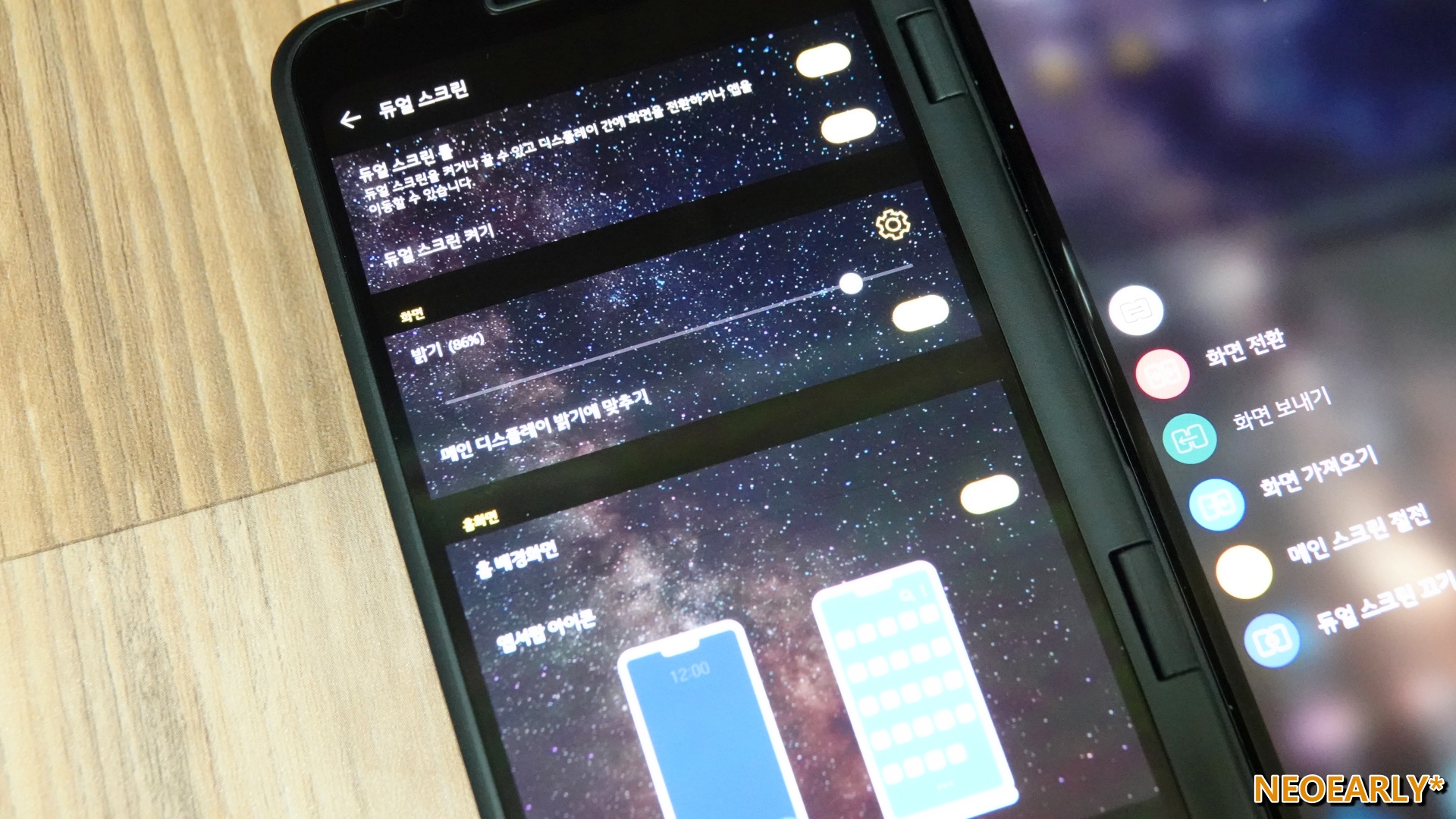 ๋์ผ ์คํฌ๋ฆฐ์ ๋ณ๋์ ๋ฐฐํฐ๋ฆฌ ์์ด LG V50 ThinQ ๋ณธ์ฒด ํ๋ฉด์ ํฌ๊ณ ํ์ผ๋ก ์ ์์ ๊ณต๊ธ๋ฐ์ ์๋ํ๋๋ฐ์. ๋์ผ ์คํฌ๋ฆฐ์ด๋ผ๊ณ ํ๋ฉด ์ ์ง ๋ ์์ชฝ ๋ค ์ผ์ผ ํ ๊ฒ ๊ฐ์ง๋ง, ๋ ์ผ๊ณ ์จ์ผ ํ๋ ๊ฑด ์๋๋๋ค. ์ํ๋ค๋ฉด ๋ ์ ์๊ณ , ํ์ํ๋ค๋ฉด ๋ณด์กฐ ํ๋ฉด์ ์ฌ์ฉํ๋ ๋์ ๋ณธ ํ๋ฉด ์ชฝ์ ์ ์ ๋ชจ๋๋ก ๋๋ ค๋ ์๋ ์๋ ๋ฑ ์ด๋ ๊ฒ ์ ๋ ๊ฒ ํ์ฉํ ์ ์๋๋ก ๋์ด ์์ฃ .