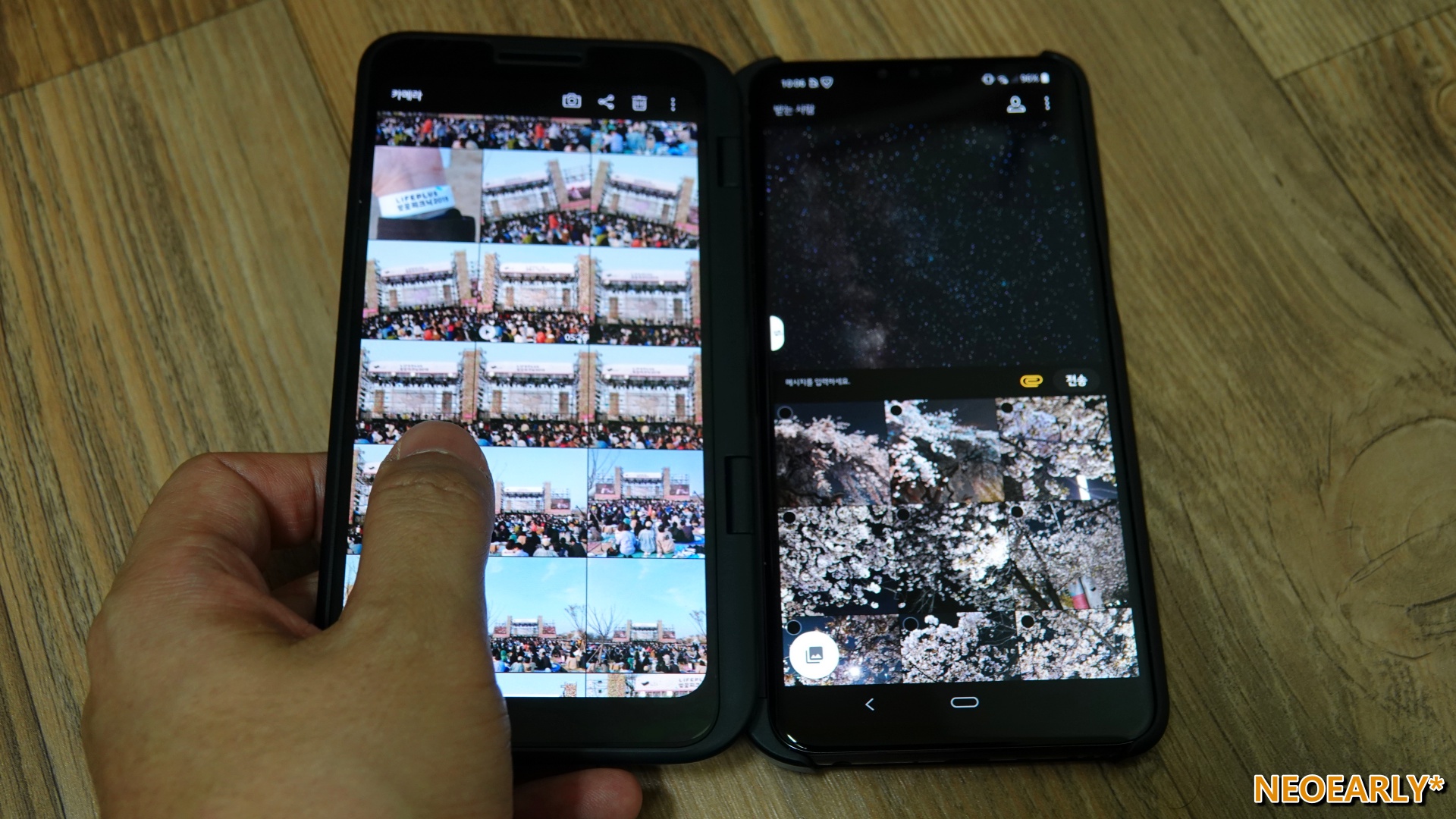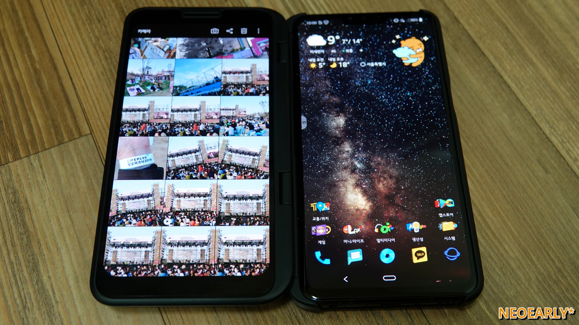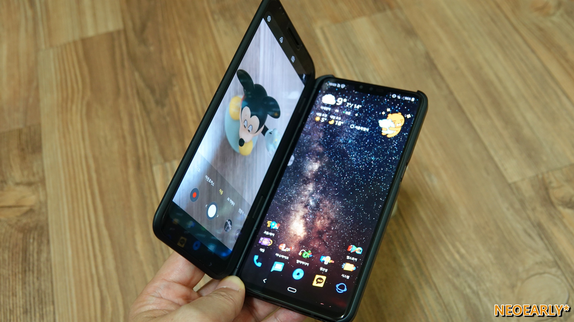 ์ด์ ๋ง ์ฒซ ๋ฐ์ ๋ ๋งํผ ์์์ ์์ง ๋ถ์กฑํด ๋ณด์ด๋ ๊ฒ ๋ ๋ง์ง๋ง, ๊ธฐ์กด๋ณด๋ค ๋ ์ด์ดํ๊ฒ ์ธ์์ ์ฎ์ด๊ฐ 5G๋ฅผ ์ํ LG์ ์์ ์ฒซ ๋ฒ์งธ ์ค๋งํธํฐ, LG V50 ThinQ(LM-V500N). ์ด ๋ ์์ ๋ณธ์ฒด ๋ค ์๋จ์ ๋น์ ๋ฐํ๋ 5G ๋ก๊ณ ๋ฅผ ํ๊ณ ์๋๋ฐ์. ์ฌ์ค ๊ทธ ๋ณด๋ค๋ ๋์ผ ์คํฌ๋ฆฐ์ด๋ผ๋ ์๋ก์ด ์ต์ ์ด ๋ ์์ ์ ์ฌ๋ก์ก์๋ ๊ฒ ์ฌ์ค์ ๋๋ค. ๋ณดํต์ ์ค๋งํธํฐ์ด ํ๋์ ํ๋ฉด๋ง ๊ฐ๊ณ ์๋ ๊ฒ๊ณผ ๋ฌ๋ฆฌ ์ด ๋ ์์ ๋์์ ๋ ๊ฐ์ ํ๋ฉด์ ์ฌ์ฉํ ์ ์์ผ๋๊น์.@_@