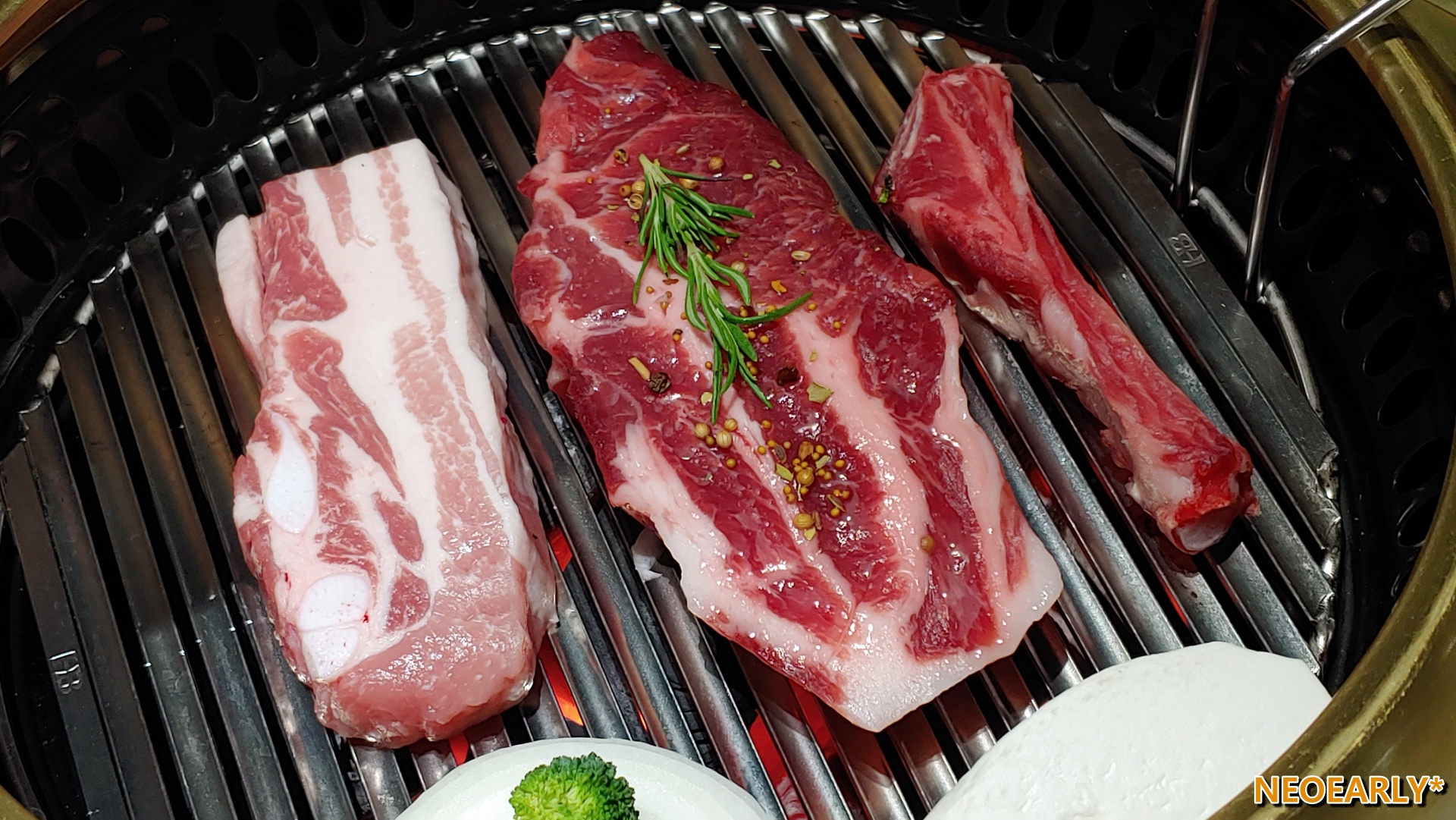 ์ ์ ํ์ ์ฃผ๋ฌธํ ์๋๋๊ณผ ์ผ๊ฒน์ด์ด ๋ฑ์ฅํ์ต๋๋ค. ๊ธด ์๊ฐ ์์ฑ์์ผ์์ธ์ง ๋ ์งํ ๋ถ์๋น์ ๋ ๋๊ตฐ์. ์ฏ๋ถ ์์ ๊ณ ๊ธฐ๋ค์ด ์ฌ๋ผ๊ฐ๊ณ ์กฐ๊ธ์ฉ ์ต์ด๊ฐ๊ธฐ ์์ํฉ๋๋ค. ๊ธฐ๋ณธ์ ์ผ๋ก ๊ณ ๊ธฐ๋ฅผ ์ง์๋ค์ด ๊ตฌ์์ฃผ๊ธด ํ๋๋ฐ ์ฒ์๋ถํฐ ๋๊น์ง ์ฑ