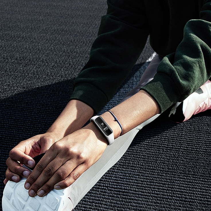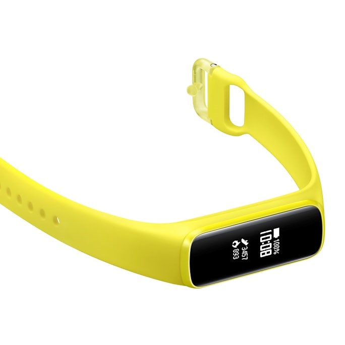 Regjistruesi i stërvitjes i gjeneratës së ardhshme, Galaxy Fit e. Një ekran i qartë ju tregon çfarë ju nevojitet me një shikim. Regjistrimi automatik i stërvitjes ju lejon të përqendroheni në ushtrimet tuaja.