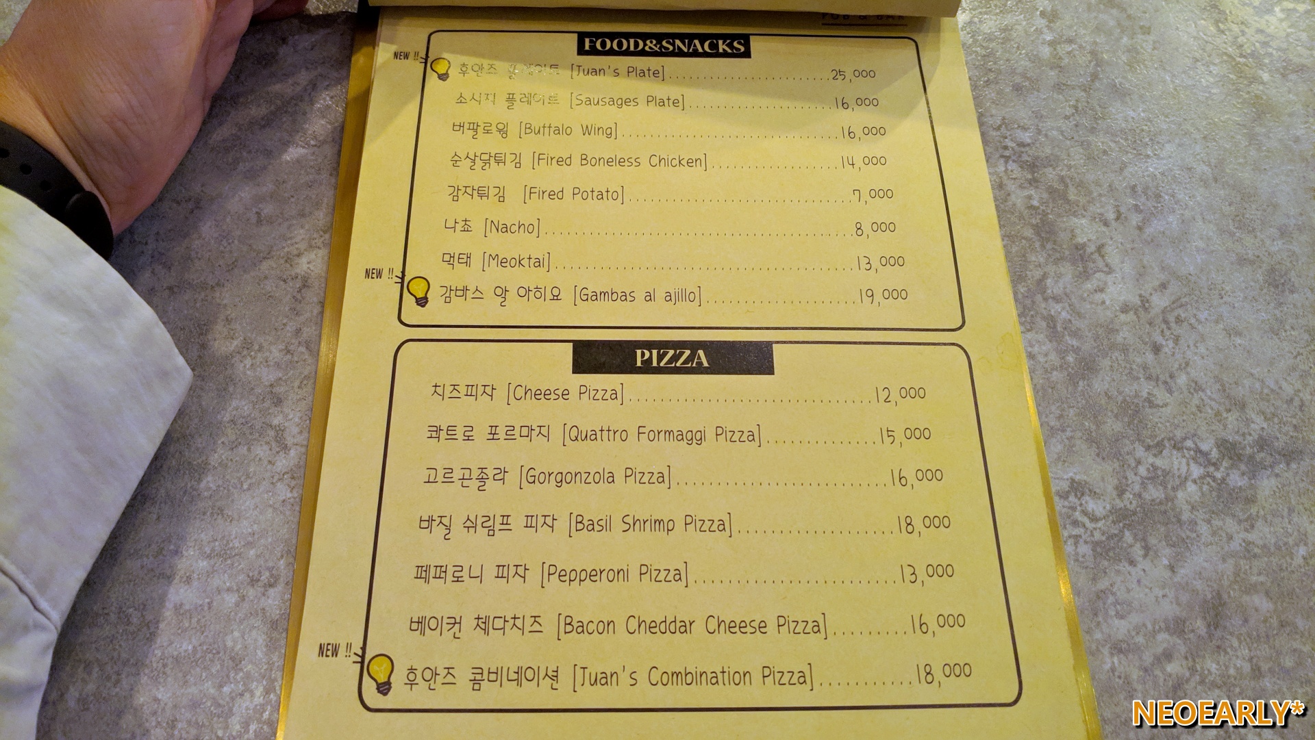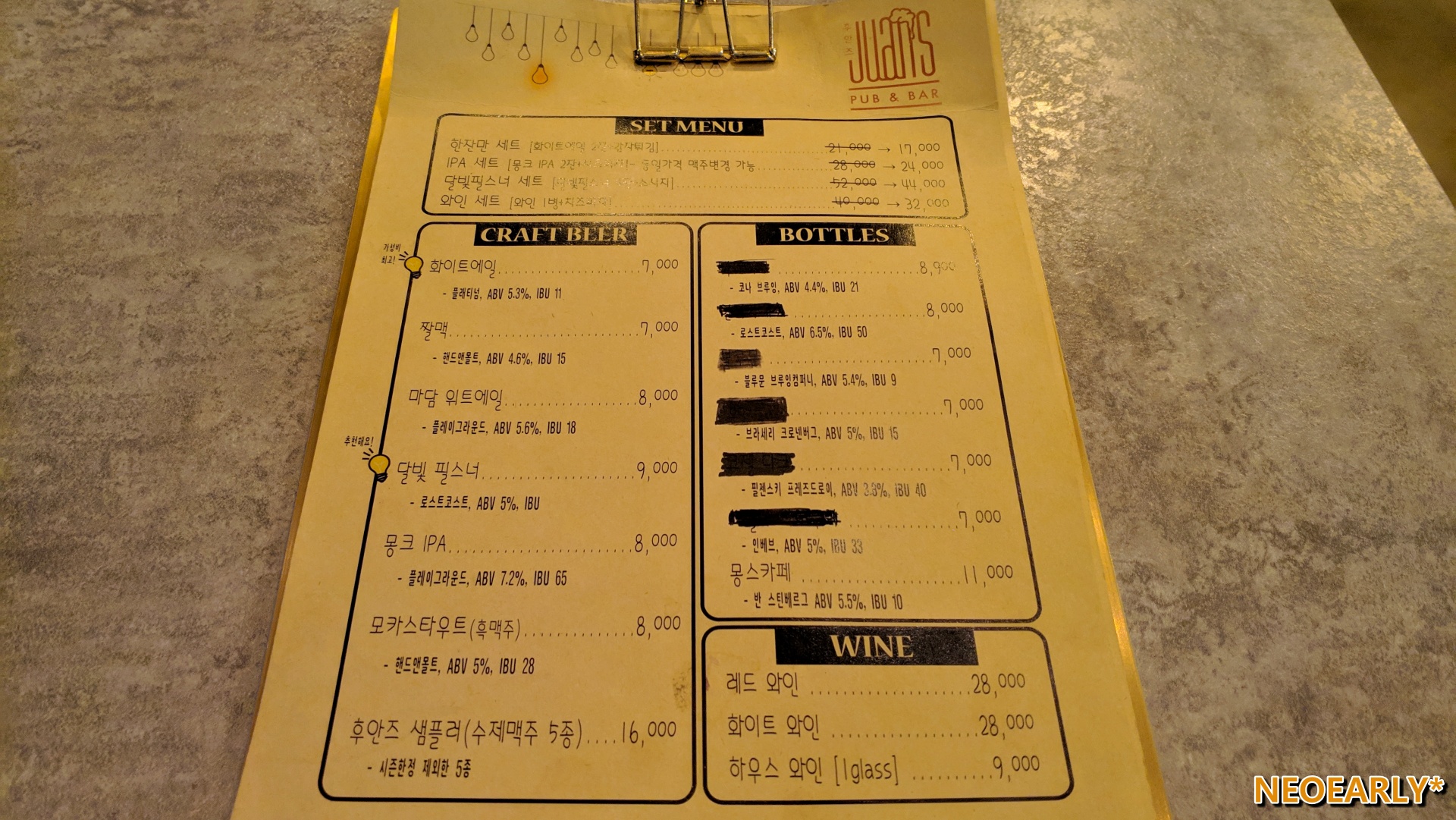 ๋์ ์ด๋ฒ์ ๊ทธ ๋ค์ ๋ค๋ฅธ ์์ ํ์ ์๊ฐํด๋ณผ๊น ํฉ๋๋ค. ํ์์ฆ(Juans)๋ผ๋ ๊ณณ์ธ๋ฐ ๋ฐ์ ํ์ ๊ฒธํ๊ณ ์๋ ๊ณณ์ด๋๊ตฐ์. ํ์ผ๋ก ํฌ์ธํธ๋ฅผ ์ค ๋ฒฝ๊ณผ ๋ฐ๋ฅผ ์ค์ฌ์ผ๋ก ์๋ฉ ๋ชจ์ฌ์๋ ์จ๊ฐ ์๋ฃ์ ์ ๊ทธ๋ฆฌ๊ณ ์ ๊ตฌ๋ค์ด ๋ถ์๊ธฐ๋ฅผ ๋ง๋ค์ด๋ด๋ ๊ณณ์ธ๋ฐ ์ด๊ตญ์ ์ธ ๋ถ์๊ธฐ๋ฅผ ๊ฝค ์ ์ฐ์ถํ ๋๋์ด์์ต๋๋ค. ๊ฐ๊ฒ ์ด๋ฆ์ด๋ ํ๊ณ ์๋ ๋ฉ๋ด์์ ์ฐ์ํด ๋ณด๋ฉด ์๋ง๋ ์คํ์ธ ์ชฝ์ด ๋ชจ๋ธ์ด์๋ ๊ฒ ๊ฐ์๋ฐ... ์ฉ ์ ์ด์ธ๋ฆฌ๋ ๋ถ์๊ธฐ๋ฅผ ํ๊ฒผ์ด์.