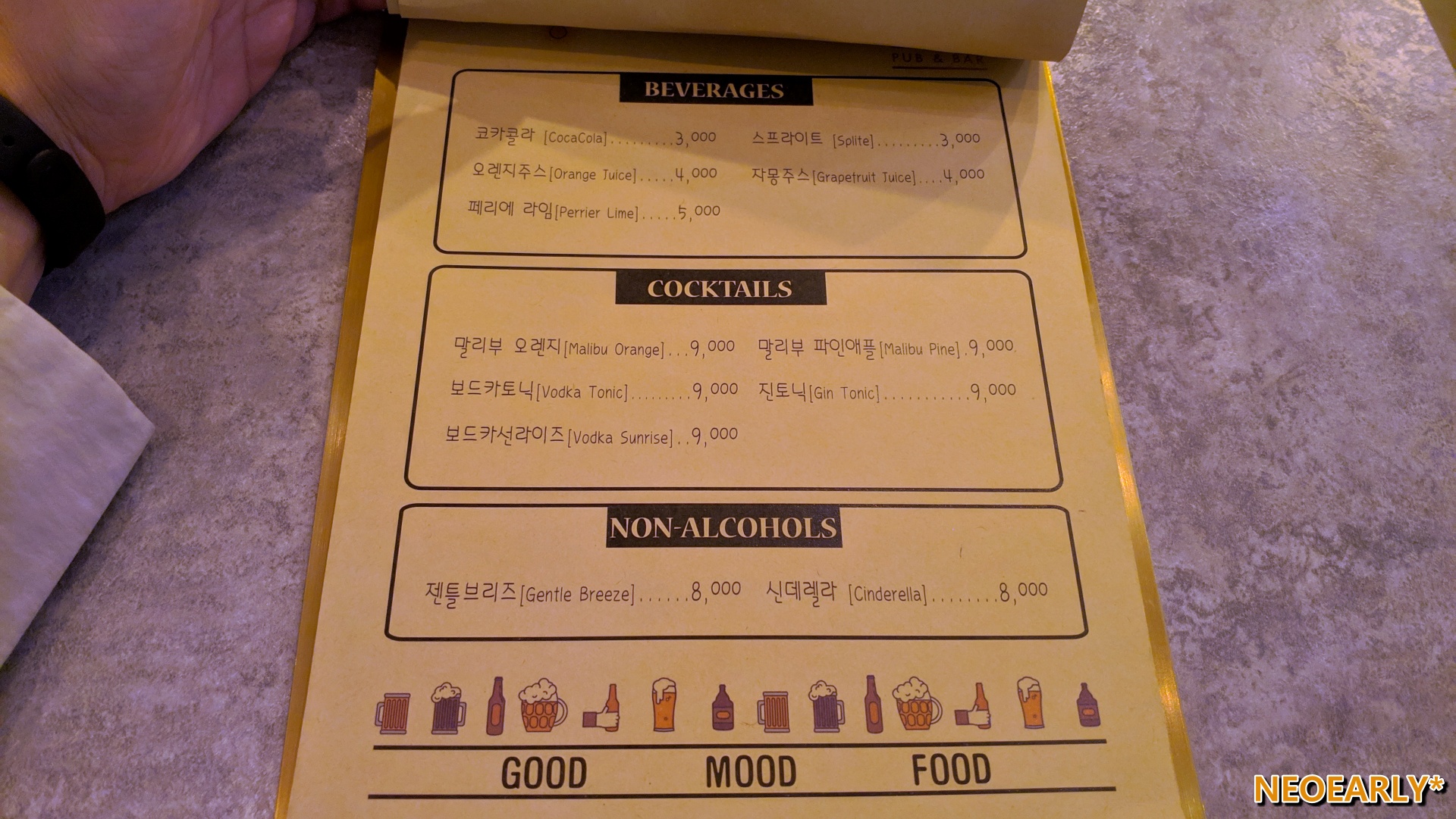 ์ผ ์ ํ ๋ธ๋ฆฌ์ฆ(Gentle Breeze, 8,000์)์ ์ด๋ฏธ 1์ฐจ๊ฐ ์์๋ ํฐ๋ผ ๋ฐฐ๊ฐ ๋ถ๋ฌ์ ์์ฃผ๋ก๋ ๊ฐ๋ฐ์ค ์ ์ํ์(Gambas al Ajillo, 19,000์)๋ง ๊ฐ๋ณ๊ฒ(?) ์ฃผ๋ฌธํ์ต๋๋ค. 1์ฐจ์์ ์ด์ด์ง๋ ์ด์ผ๊ธฐ๋ค์ด ํ