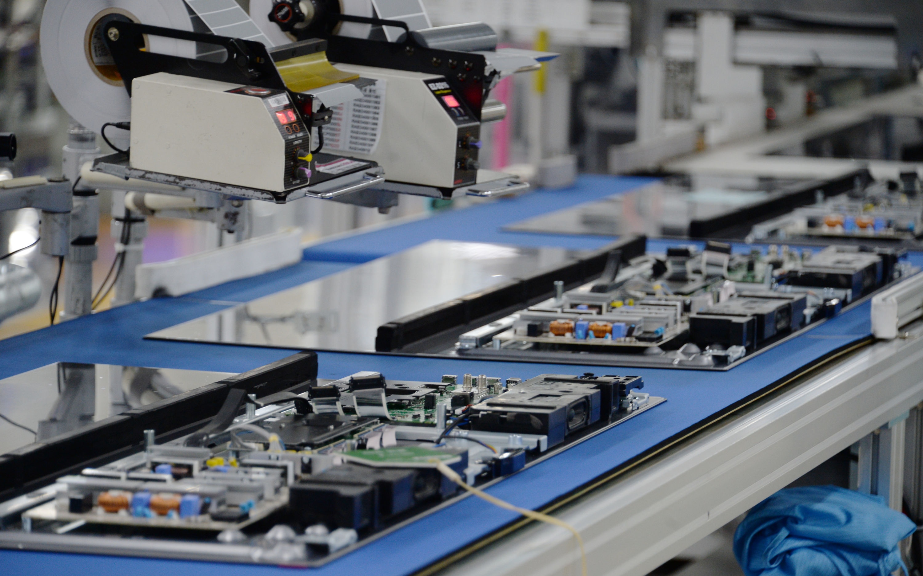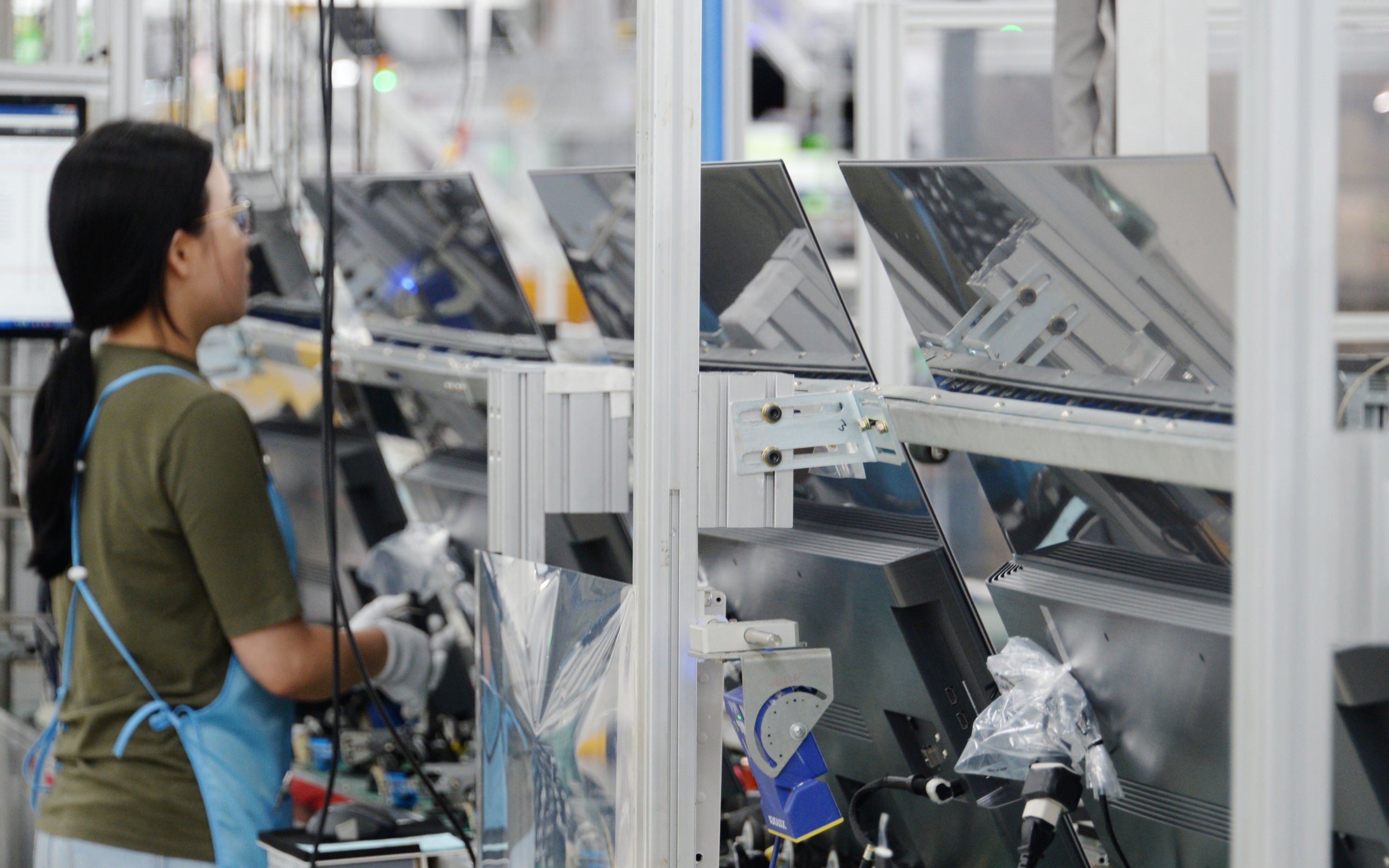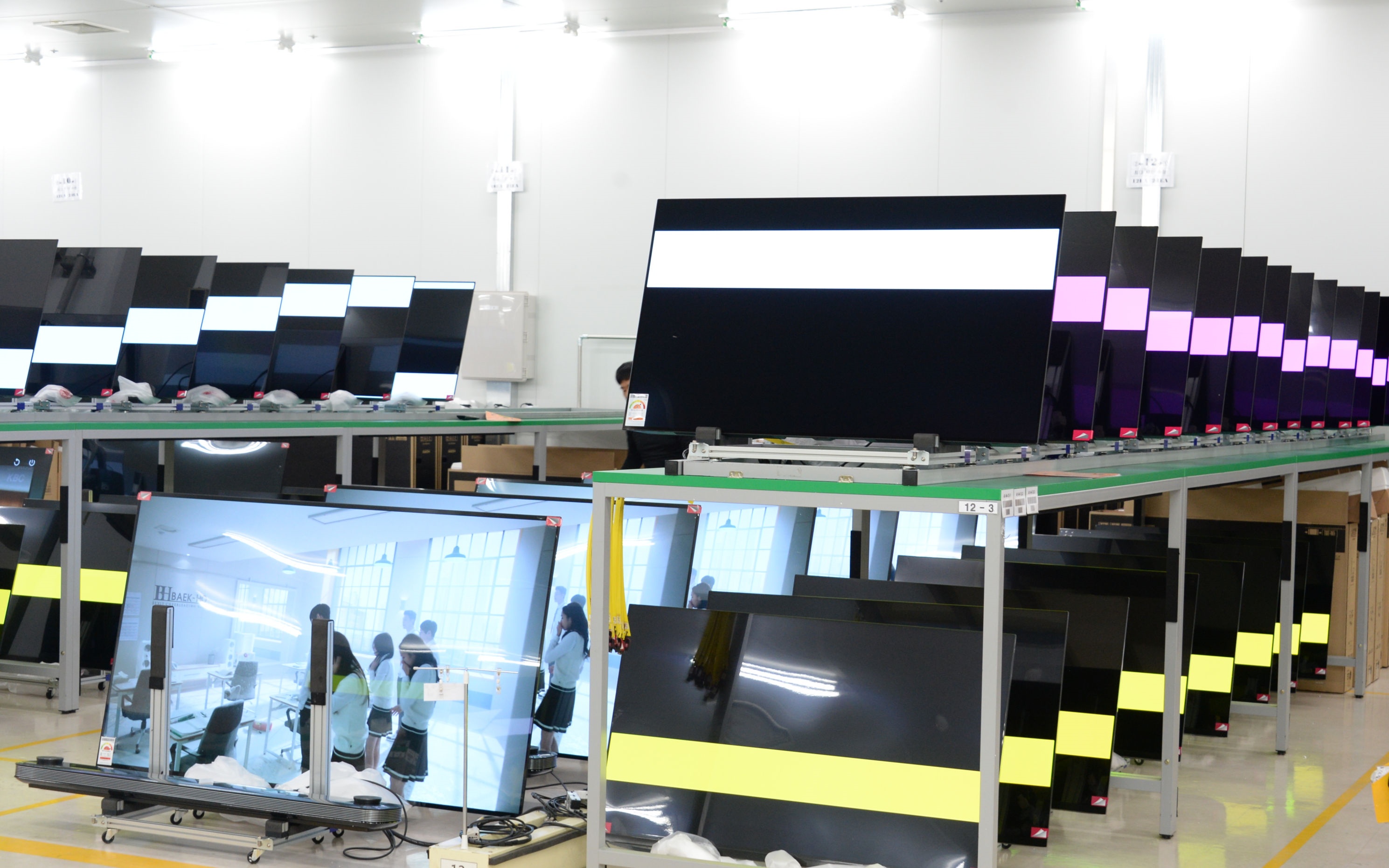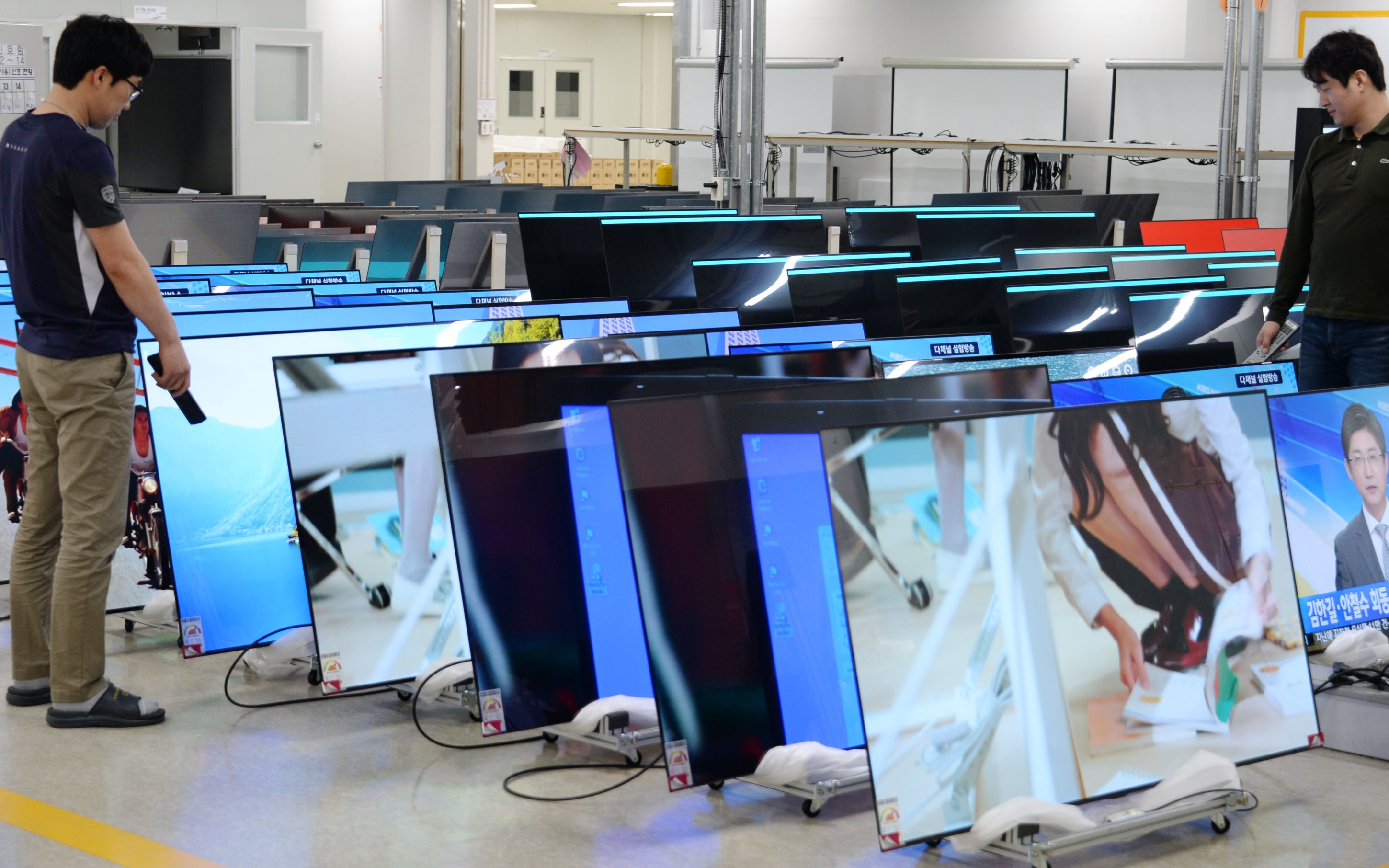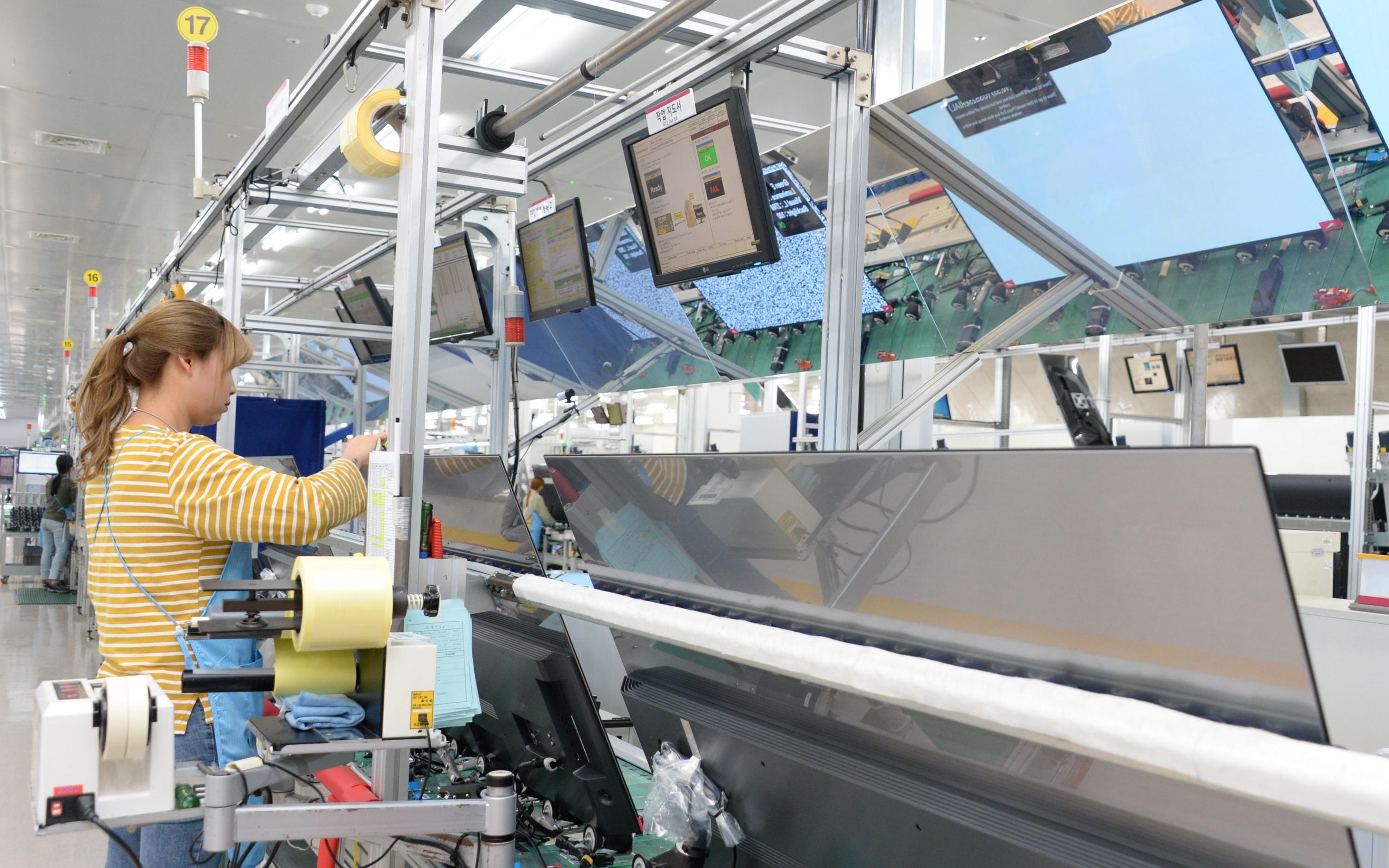 TV๊ฐ ์กฐ๋ฆฝ๋๋ ๋ผ์ธ ์์๋ ์ฌ๋ฌ ๋ชจ๋ํฐ๋ง ์ฅ๋น์ ์ ๋ฌธ ์ง์๋ค์ ๊ผผ๊ผผํจ์ผ๋ก ์ต์ข