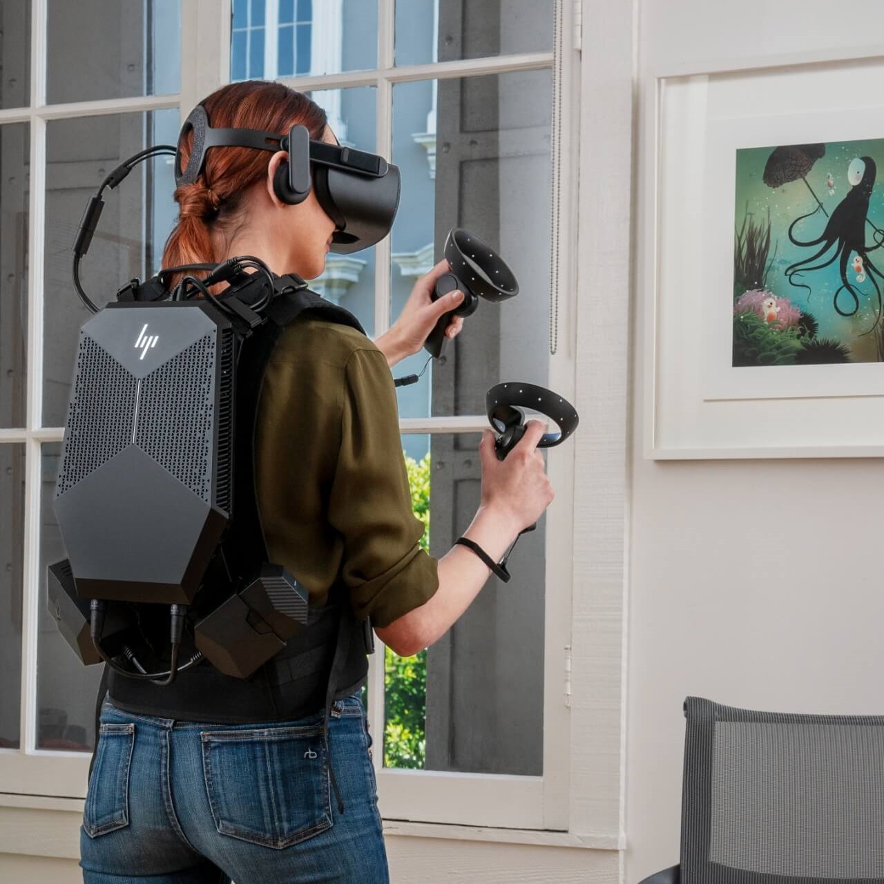 HP๊ฐ€ ์ถœ์‹œํ•œ 2์„ธ๋Œ€ VR ๋ฐฑํŒฉ(VR Backpack)์ด ๋ฐ”๋กœ ๊ทธ๋Ÿฐ ์ œํ’ˆ์ž…๋‹ˆ๋‹ค. ๋„ํ‚น ์Šคํ…Œ์ด์…˜์ด ์žˆ์–ด์„œ ํ‰์†Œ์—” ์Šฌ๋ฆผํ•œ ๊ฒŒ์ด๋ฐ ๋ฐ์Šคํฌํƒ‘์ฒ˜๋Ÿผ ๋ชจ๋‹ˆํ„ฐ ๋“ฑ๊ณผ ์—ฐ๊ฒฐํ•ด์„œ ์‚ฌ์šฉํ•  ์ˆ˜ ์žˆ๊ณ , ๋ฐฑํŒฉ์ฒ˜๋Ÿผ ์‚ฌ์šฉํ•  ๋•Œ๋Š” ๋‚ด๋ถ€์˜ ๋ฐฐํ„ฐ๋ฆฌ๊ฐ€ ์žˆ์–ด VR ํ—ค๋“œ์…‹๊ณผ ์—ฐ๊ฒฐํ•ด ๋ณ„๋„์˜ ์™ธ๋ถ€ ์ „์› ์—ฐ๊ฒฐ ์—†์ด ๋…๋ฆฝ์ ์œผ๋กœ ์‚ฌ์šฉํ•  ์ˆ˜ ์žˆ์Šต๋‹ˆ๋‹ค. ๋Œ€์ค‘์ ์ธ ์ œํ’ˆ์ด ์•„๋‹ˆ์–ด์„œ์ธ์ง€ ๊ฐ€๊ฒฉ์€ 3,299๋‹ฌ๋Ÿฌ(393๋งŒ ์› ์ •๋„)๋กœ ์ œ๋ฒ• ๋น„์‹ธ๋˜๋ฐ... ๊ทธ๋ž˜์„œ ๊ทธ๋Ÿฐ์ง€ HP๋Š” ๊ฒŒ์ž„ ์™ธ์— VR๋กœ ์ง์›์„ ํ›ˆ๋ จ์‹œํ‚ฌ ์ˆ˜ ์žˆ๋‹ค๋Š” ์ ์„ ๋“ค์–ด ๊ธฐ์—…์šฉ์œผ๋กœ๋„ ํ™๋ณดํ•˜๊ณ  ์žˆ๋”๊ตฐ์š”.