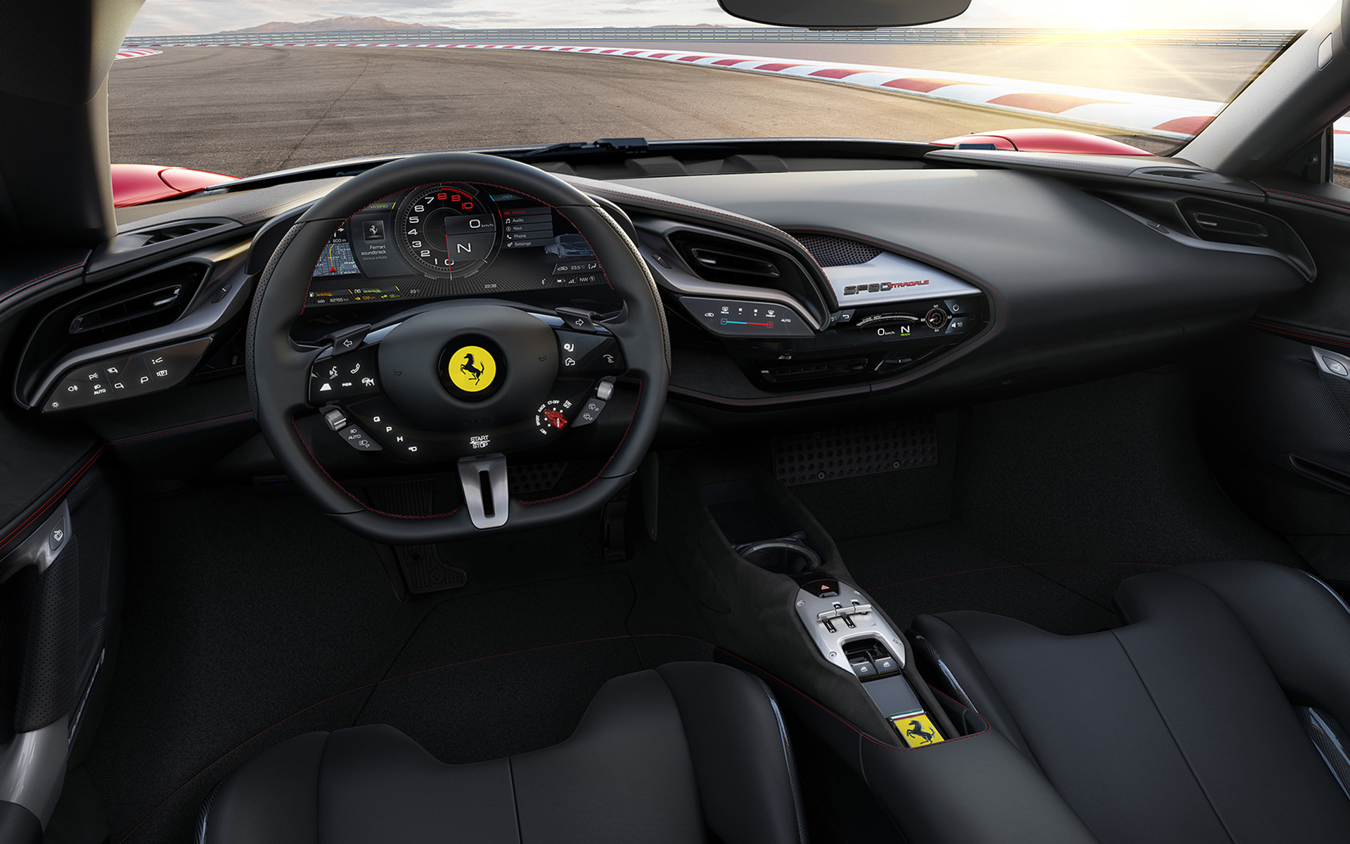 Ferrari SF90 Stradale, first series production PHEV (Plug-in Hybrid Electric Vehicle): V8 turbo, 1000cv maximum power, weight/power ratio of 1.57 kg/cv.
