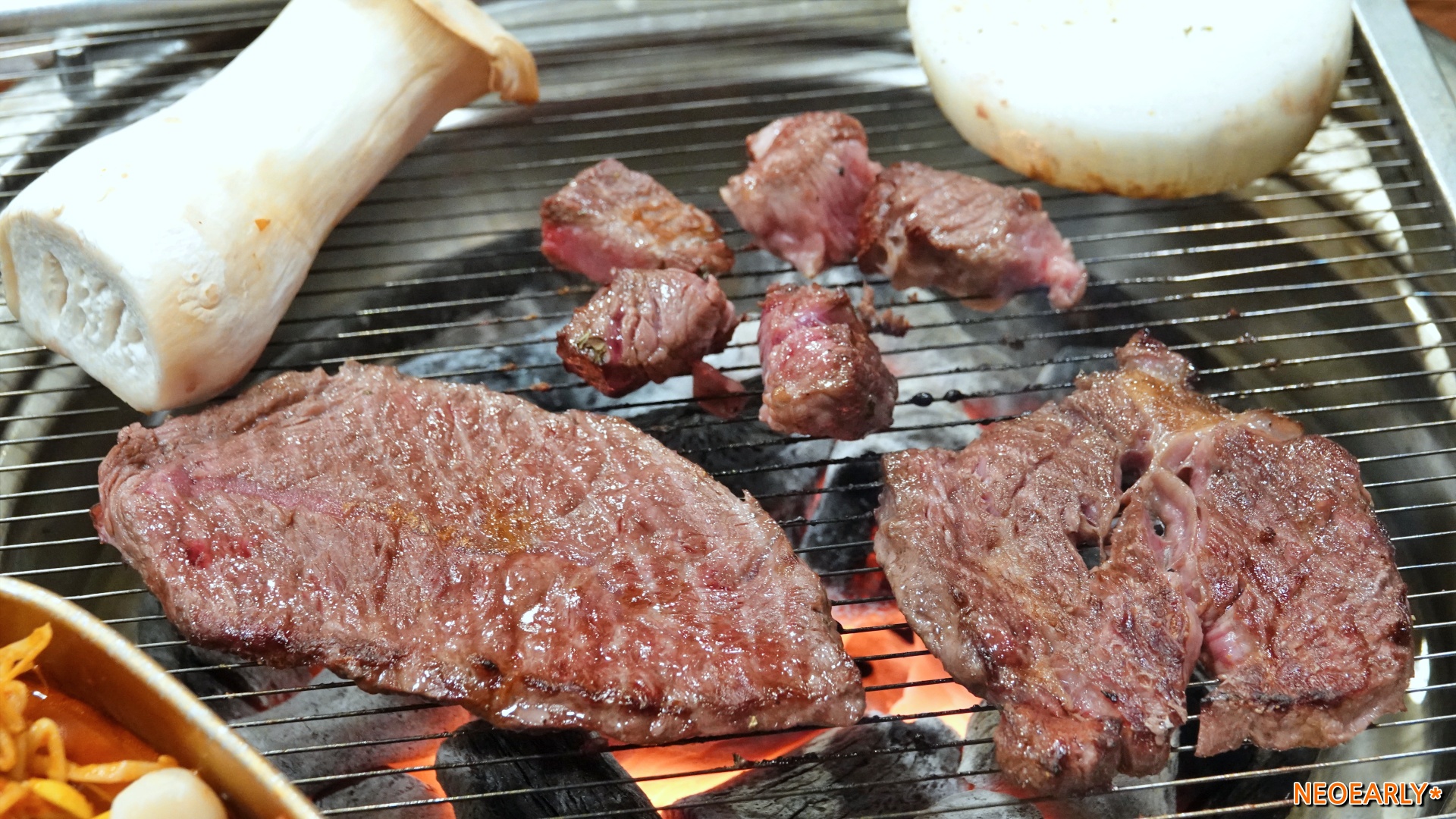 ์์ฌ๋ฅผ ํ ๊ณณ์ ์๊ทํฌ์์ ์๋ ์ค๋ฌธ๊ด๊ด๋จ์ง์์ ๊ทธ๋ฆฌ ๋ฉ์ง ์์ ๊ณ ๊ธฐ๋ฐ๋ณด ์ ์๊ทํฌ์ ์ด์๋๋ฐ์. ํ์ฐ ๊ณ ๊ธฐ๋ฅผ ๋ฌด์ ํ์ผ๋ก ์ฆ๊ธธ ์ ์๋ ๊ณณ์ด์์ต๋๋ค. ์กํ์ ํฌํจ ์ฌ๋ถ์ ๋ฐ๋ผ A, B ์ฝ์ค ๊ฐ๊ฒฉ์ด ๋ฌ๋ผ์ง๋๋ฐ ์กํ๊ฐ ์๋ ์ชฝ์ด ์ข ๋ ๋น์ธ์ฃ . ์ ํฌ๊ฐ ๋จน์ ๊ฑด A ์ฝ์ค(19,900์)์๋๋ฐ์. ๋ง๋๊ฐ๋น์ด, ๋งค์ฝค๊ฐ๋น์ด ๋ฑ ์ข ๋ ๋ง์ด ๊ฐ๋ฏธ๋ ๋ถ์ธ์ ํจ๊ป ๋ฑ์ฌ, ๊ฐ๋น์ด, ํ ์์ด, ๋ถ์ฑ์ด ๋ฑ ์ฌ๋ฌ ๋ถ์๊ฐ ์กฐ๊ธ์ฉ ๋์์ ์กฐ๊ธ์ฉ ๋ค๋ฅธ ์๋ก์ด ๋ง์ ๊ณ์ ๊ฒฝํํ ์ ์๋ค๋ ๊ฒ ์ฅ์ ๊ฐ์์ต๋๋ค.