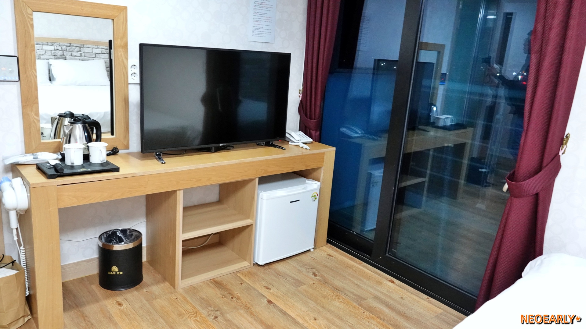๊ฐ์ค ๋ด๋ถ๋ ๋งค์ฐ ์ฌํํ์ต๋๋ค. ์ฒซ๋์ ๋ค์ด์จ ๊ฑด ํธ์๊ณผ ์ฑ๊ธ ์นจ๋๊ฐ ํ๋๊ฐ ์ ๋ถ์์ผ๋๊น์. ํ์ง๋ง, ํ๊ด ์์ ์ท์ด๋ ์ง์ ๋ฃ์ ์ ์๋ ์๋ฉ๊ณต๊ฐ์ด ์๊ณ ์ค์๋ถ์ค๊ฐ ์๋ ํ์ฅ์ค์ TV๋ ํค์ด๋๋ผ์ด์ด, ๊ฑฐ์ธ ๋ฑ ๊ธฐ๋ณธ์ ์ธ ํธ์ ์์ค์ด ๋ชจ๋ ๊ฐ์ถฐ์ ธ ์์ด ํ๋ฃป๋ฐค ๋ฌต์ด๊ฐ๊ธฐ์ ์ ํ ๋ถํธํ ์๋ ๊ตฌ์ฑ์ด๋๋ผ๊ณ ์. ๊ทธ๋ฆฌ๊ณ ๋งฅ์ฌ ์ปคํผ๋ฏน์ค๊น์ง ๊ผญ(?) ํ์ํ ๊ฒ๋ค๋ง ๋ชจ์์ ์ ๊ณตํ๋ ์ด๋งค๋ํฐ ํฉ๋ ์ข์๊ณ ์.