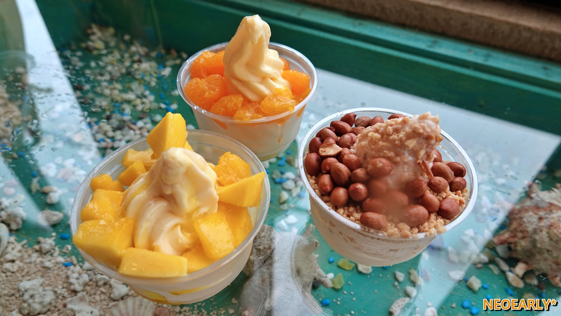 콩 μμ΄μ€ν¬λ¦ΌμΈ λ콩μ΄(5,000μ), μ νλ§κ³ λ‘ λ§μ λΈ μ νλ§κ³ μμ΄μ€ν¬λ¦Ό λλ§Ήμ΄(5,000μ), μ μ£Ό νλ©΄ λ μ€λ₯΄λ νλΌλ΄κ³Ό μ²νν₯μΌλ‘ λ§μ λΈ νλΌλ΄/μ²νν₯ μμ΄μ€ν¬λ¦Ό λκ·€μ΄(5,000μ)κΉμ§ λ