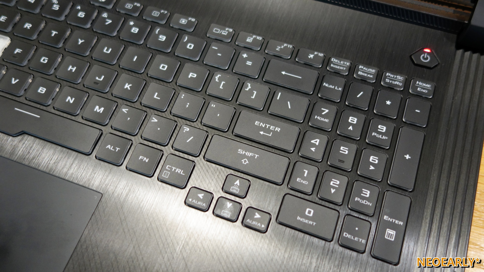 BMW λ””μžμΈμ›μŠ€μ™€ μ†μž‘κ³  μ™„μ„±ν–ˆλ‹€λŠ” λ””μžμΈμ€ 화렀함을 μΆ”κ΅¬ν•˜λŠ” 게이밍 λ…ΈνŠΈλΆκ³Ό μ°¨λΆ„ν•œ 일반 λ…ΈνŠΈλΆ μ‚¬μ΄μ—μ„œ μ–‘μͺ½μ˜ μž₯점을 λͺ¨λ‘ μ·¨ν•˜λ €κ³  λ…Έλ ₯ν•œ λŠλ‚Œμ΄μ—ˆμŠ΅λ‹ˆλ‹€. ROG 특유의 AURA 싱크λ₯Ό 톡해 λͺ‡ κ°€μ§€ λͺ¨λ“œ 쀑에 μ„ νƒν•˜κ±°λ‚˜ μž„μ˜λ‘œ μ„€μ •ν•  수 μžˆλŠ” λ°˜μ§μ΄λŠ” RGB λΌμ΄νŒ…μ€ ν‚€λ³΄λ“œμ™€ 본체 ν•˜λ‹¨μ—μ„œ μ€μ€ν•˜κ²Œ λΉ›λ‚˜λ©° 게이밍 λ…ΈνŠΈλΆμ˜ DNAλ₯Ό λ“œλŸ¬λ‚΄μ§€λ§Œ, λΈ”λž™ ν•œ κ°€μ§€ 색과 ꡰ더더기 μ—†λŠ” 직선 μœ„μ£Όλ‘œ κ΅¬μ„±λœ λ””μžμΈμ€ μƒλŒ€μ μœΌλ‘œ μ°¨λΆ„ν•©λ‹ˆλ‹€. 그런 이질적인 면이 더 λͺ¨λ˜ν•˜κ³  μ„Έλ ¨λœ λŠλ‚Œμ΄μ£ . 베저을 μ΅œμ†Œν•œ 덕에 17.3인치 ν™”λ©΄μ΄μ§€λ§Œ, νƒ€μ‚¬μ˜ 15인치 λ…ΈνŠΈλΆκ³Ό λΉ„μŠ·ν•œ 크기인 것도 λ§ˆμŒμ— λ“€μ—ˆκ³ μš”.