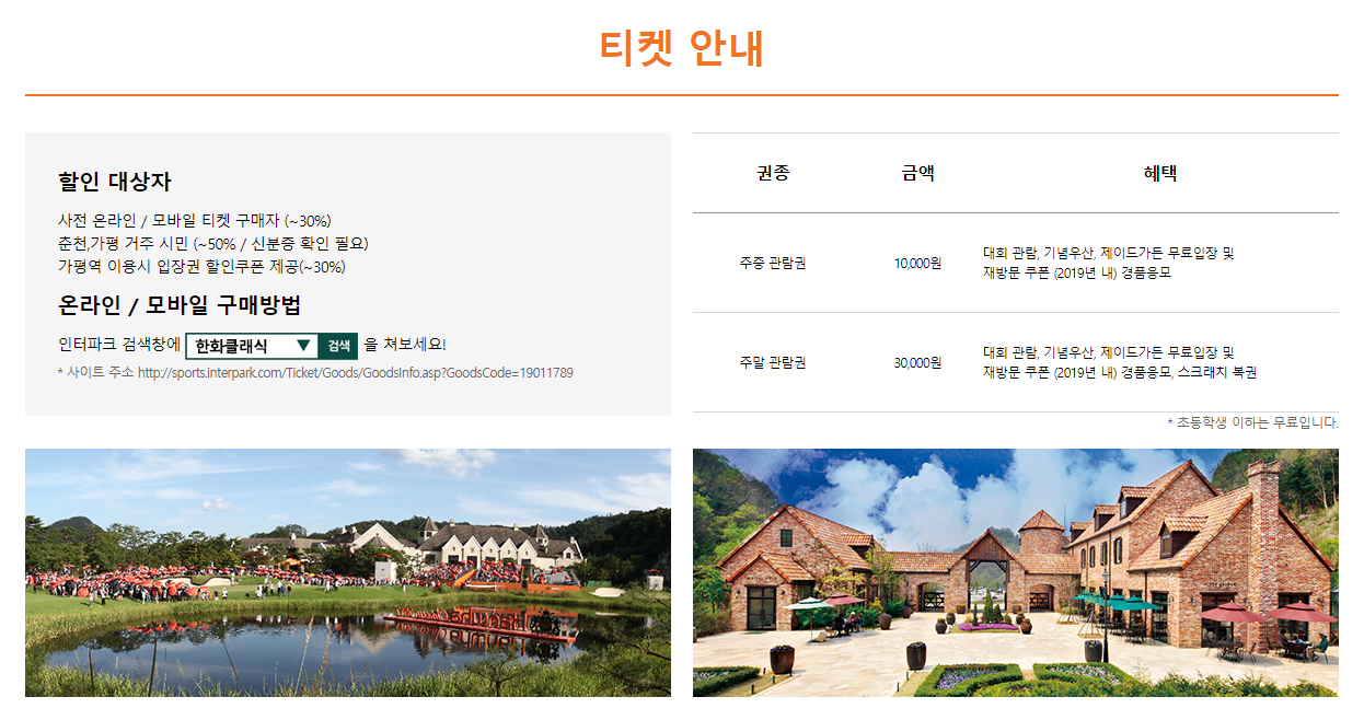 ํํ ํด๋์ ๊ณจํ 2019์ ์ฐธ์ฌํ๊ณ ์ถ์ผ์๋ค๋ฉด ํ์ฅ์์ ํ๊ธ์ด๋ ์นด๋๋ก ํฐ์ผ์ ๊ตฌ๋งคํ์ค ์๋ ์์ง๋ง, ์ธํฐํํฌ์์ ์จ๋ผ์ธ ๊ตฌ๋งค๋ ํ์ค ์ ์์ผ๋ ๋ฏธ๋ฆฌ ์ฌ์ ์๊ฒ ์๋งคํด๋์๋ฉด ์ข๊ฒ ์ฃ ~^^