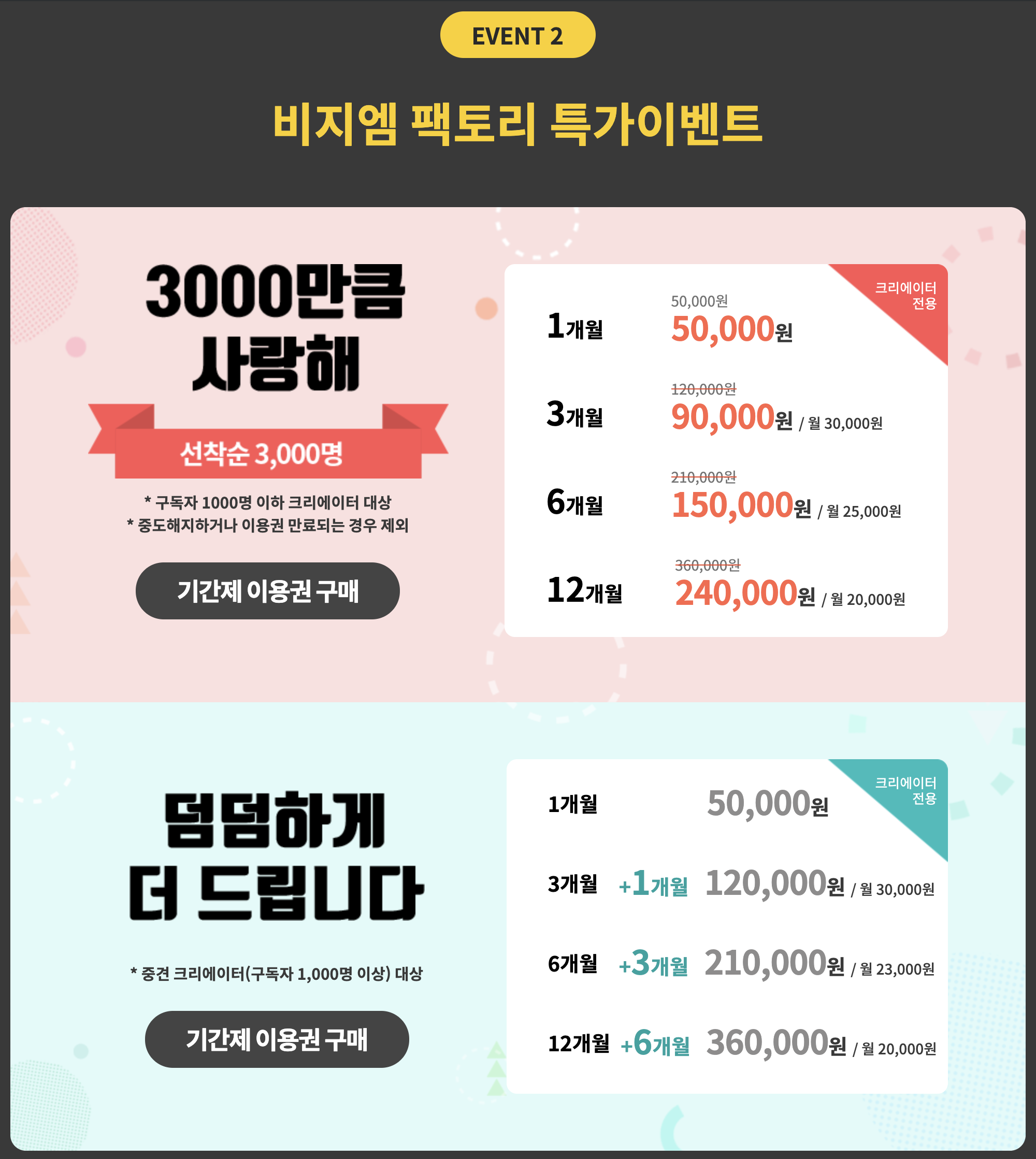 ๋ฐ์. 1๊ณก๋น 3๋ง ์์ผ๋ก ์ด์ฉ๋ฃ๋ฅผ ๋ถ๋ดํ๊ณ ํ์๋ ์ฉ๋ ์ ํ ์์ด ์ฌ์ฉํ ์๋ ์๊ณ , 1๊ฐ์์์ 12๊ฐ์๊น์ง ๊ธฐ๊ฐ๋ณ๋ก ์ผ์ ํ ๋น์ฉ์ ์ง๋ถํ๊ณ ์ํ๋ ๊ณก์ ์ด์ฉํ ์ ์๋ ๊ธฐ๊ฐ ์ด์ฉ๊ถ์ ํ๋งค ์ค์
