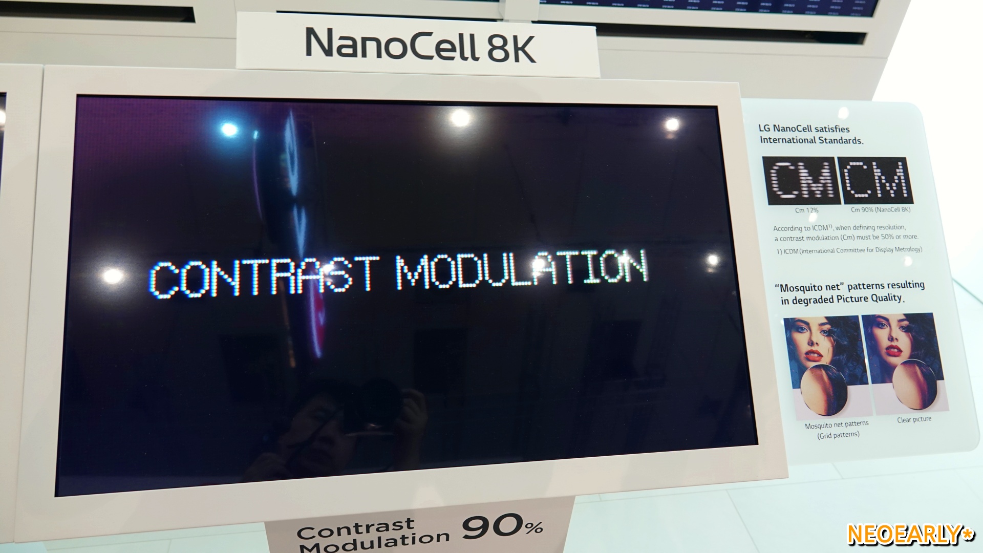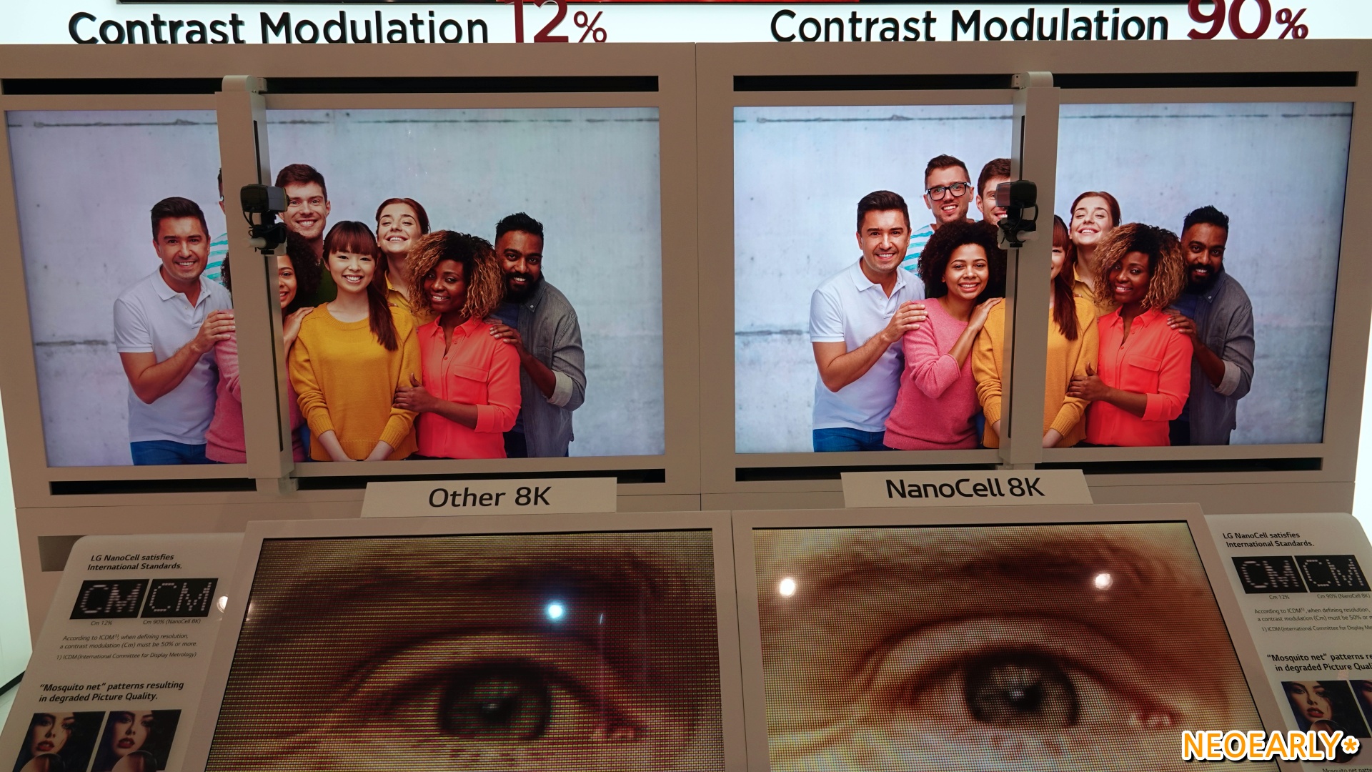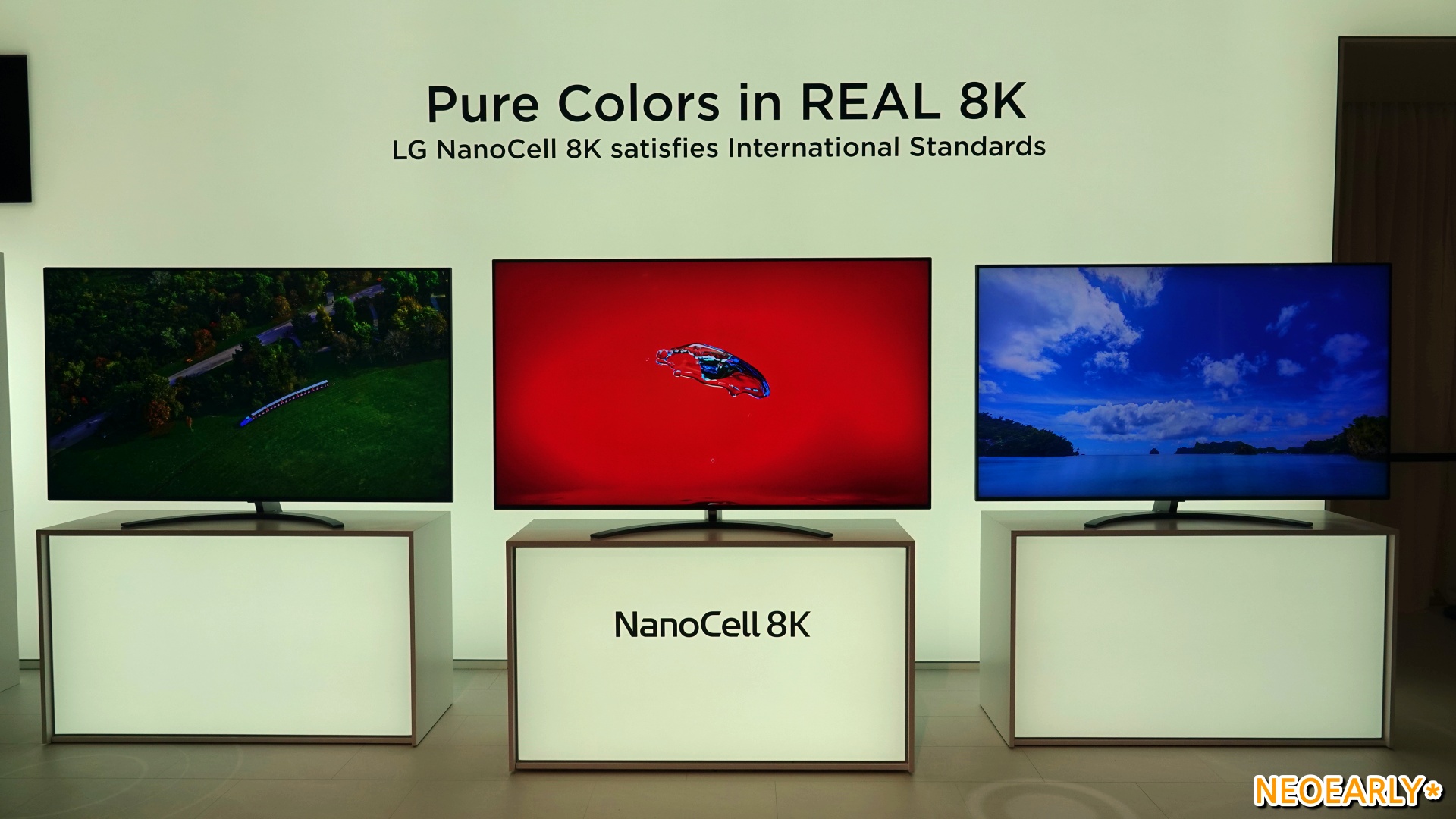 LG์ ์ ๋ถ์ค์์ ๋ง๋ ์ ์์๋ ๊ฑด ์ธ๊ณ ์ต์ด์ด์ ์ต๊ณ ์ ํ์ง์ ์๋ํ๋ 88์ธ์น ์ฌ๋ ๋ 8K TV(OLED 8K TV)์ LED LCD์ด๋ฉด์๋ ๊ฒฝ์์ฌ๋ฅผ ์๋ํ๋ ๋๋ ธ์ 8K TV(NanoCell 8K TV)์์ต๋๋ค. ๊ฐ๊ฐ ํ HD์ 16๋ฐฐ, 4K์ 4๋ฐฐ๋ ๋๋ 7680 x 4320์ ๋์ ํด์๋๊ฐ ์จํ ํ๋ฉด์ ๋ง๋ค์ด ๋ด๋๊ตฐ์. ์์ฅ์ ์ด๋๋ ๋์คํ๋ ์ด ๋ฆฌ๋๋ต๊ฒ LG์ ์์ 8K TV๋ ๋จ์ํ ํ์๋ง ๋ง์ ๊ฒ ์๋๋ผ ์๋ฑํ ํ์ง์ ๋ช ๋๋ฅผ ๋ํด ํ์ฅ์์ ๋ง๋ ๋ค์ํ 8K TV ์ค์์๋ ๊ตฐ๊ณ์ผํ์ ํ์ง์ ๋ณด์ฌ์คฌ๋๋ฐ์. 8K๋ผ๋ ํด์๋ ฅ์ ํํํ๊ธฐ ์ํด 3,300๋ง ๊ฐ๋ ๋๋ ํ์๋ ๊ธฐ๋ณธ์ด๊ณ ๋๋ ธ์ 8K TV๋ 90%, ์ฌ๋ ๋ 8K TV๋ 94% ๋ฑ ์๋์ ์ธ ํ์ง์ ๋ช ๋๋ฅผ ๋ํด ๊ทน๊ฐ์ ํ์ง์ ๋ณด์ฌ์ค๊ฑฐ์ฃ . ํ์ง์ ๋ช ๋๊ฐ ์๋์ ์ผ๋ก ๋จ์ด์ง๋ ํ์ฌ์ ๋ชจ๋ธ๊ณผ ๋ฌ๋ฆฌ 8K ๋์คํ๋ ์ด์ ๋ํ ํ์ค์ ์ธ์ฐ๋ ๊ตญ์ ๋์คํ๋ ์ด๊ณ์ธก์์ํ(ICDM)๊ฐ ์ธ์ด 8K TV์ ํ์ง์ ๋ช ๋ ๊ธฐ์ค์ธ 50%๋ฅผ ํ์ฉ ๋ฐ์ด๋๋ 90% ์์ค(๋๋ ธ์ TV ๊ธฐ์ค)์ ํ์ง์ ๋ช ๋๋ฅผ ์๋ํ๋ ๋ฆฌ์ผ 8K TV๋ค์ด ๋ชจ์ต์ด์์ฃ . ์ฌ๋ ๋ TV๊ฐ ์๋๋ผ LCD TV์ธ ๋๋ ธ์ 8K TV์์๋์.
