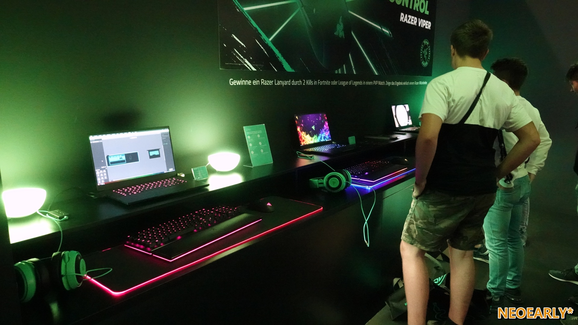 μλ μ΄λ‘μ΄λ‘ν 컬λ¬λ‘ λΆμ€λ₯Ό κΎΈλͺλ λ μ΄μ (Razer). λ€μν κ²μ΄λ° λ