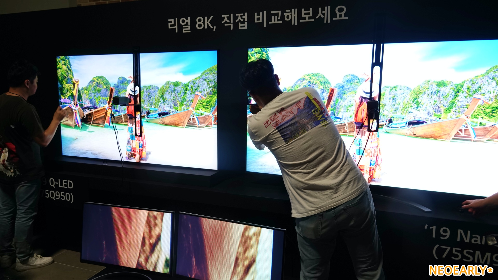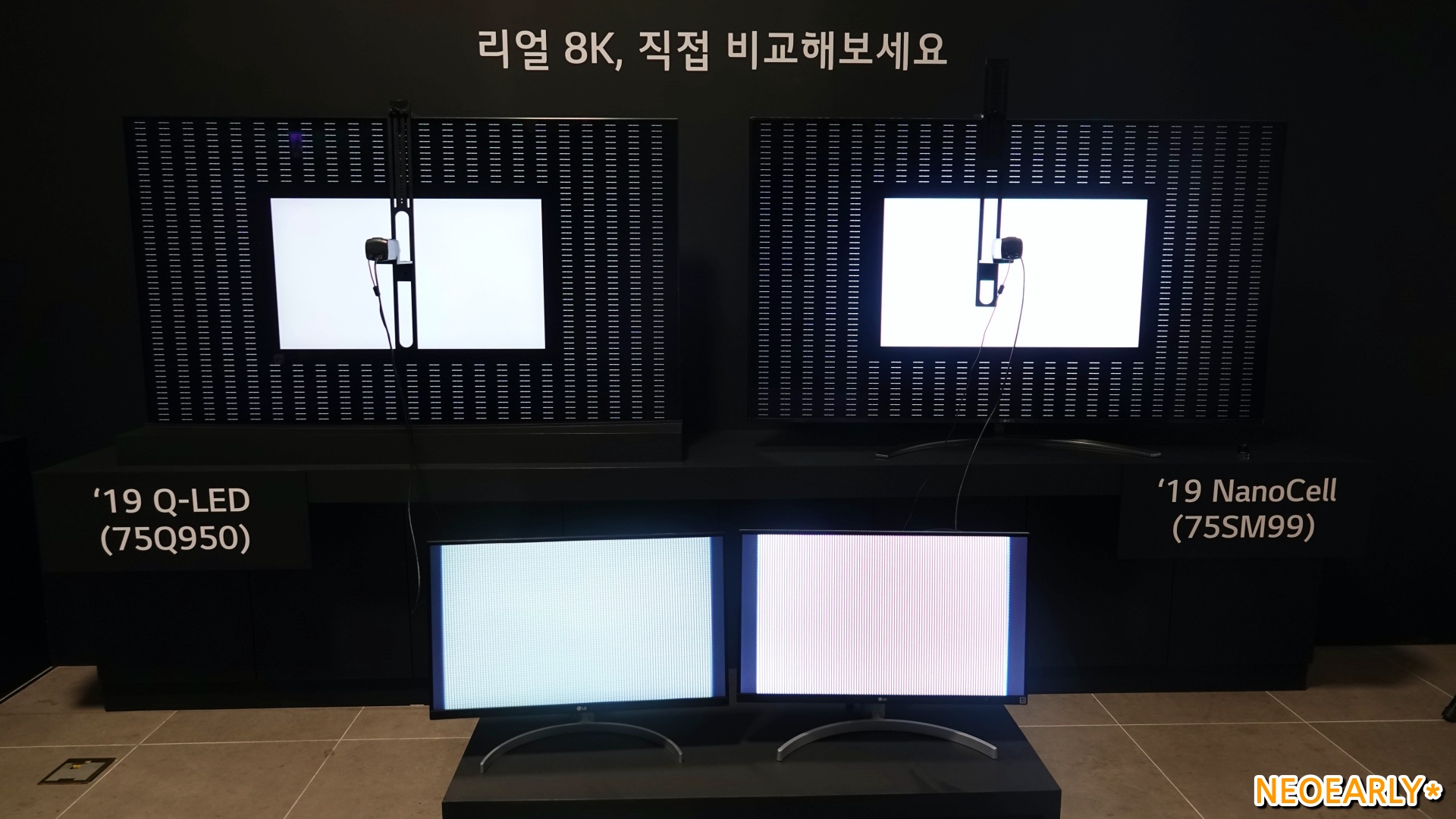 ํ 8K TV๋ฅผ ๋น๊ตํ๋๋ฐ์. LED ๋ฐฑ๋ผ์ดํธ๋ฅผ ์ฌ์ฉํ๋ ๊ณตํต์ ์ด ์๋ 8K Q-LED์ ๋๋