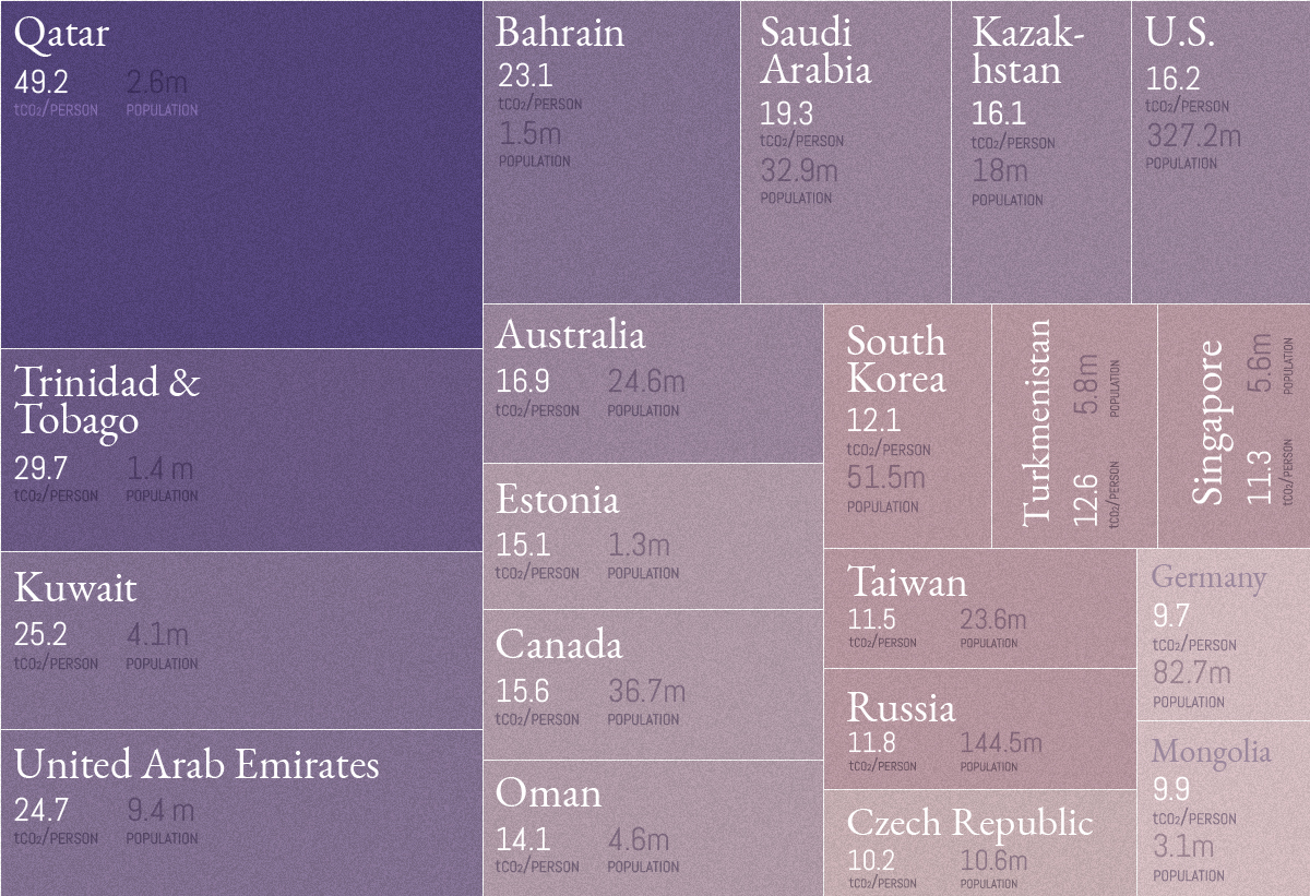 Just 15 countries are responsible for almost three quarters of the world’s carbon emissions. But what does this look like per capita, and over time?