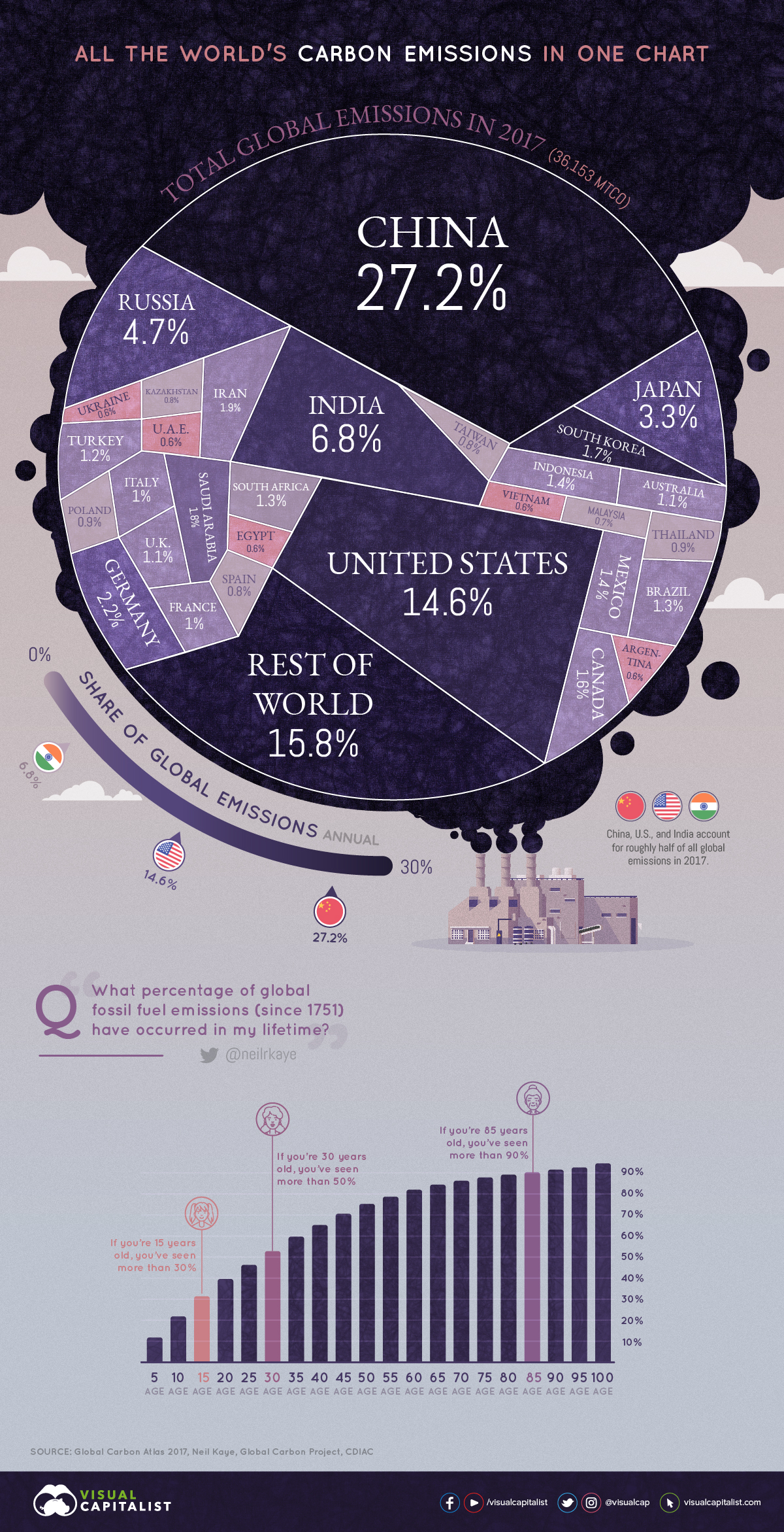 ๊ฐ์ฅ ๋ง์ด ํ์ ๋ฐฐ์ถํ๋ ๋๋ผ ์ค๊ตญ, ํ๊ตญ์? by VisualCapitalist.com