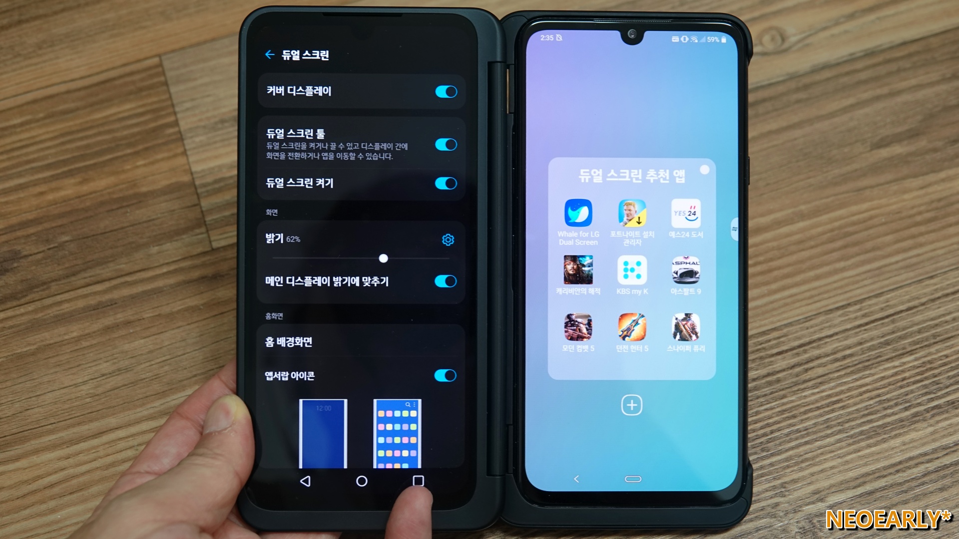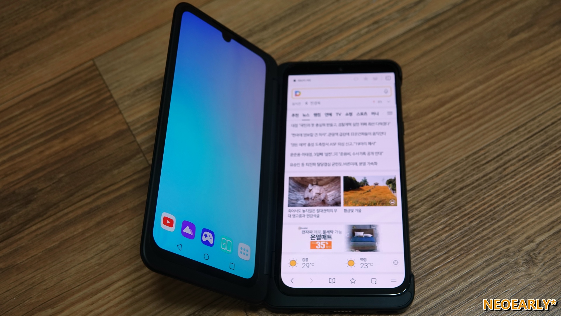 ์๋ก์ด LG ๋์ผ ์คํฌ๋ฆฐ์ 19.5:9 ํ๋ฉด๋น์ 6.4์ธ์น ํ HD+(2340 x 1080) OLED ํ๋น์ ๋์คํ๋ ์ด๋ก ๋ณธ์ฒด์ ์์ ํ ๋์ผํ ๋ชจ์ต๊ณผ ๊ท๊ฒฉ์ ๊ฐ์ถ๊ณ ์์ต๋๋ค. ํด์๋, ํ๋ฉด ๋น์จ, ์ฌ์ง์ด ๋ด์ธ์ปจ๋์คํฌ๋ฆฐ๊น์ง ๋ณธ์ฒด์ ๊ทธ๊ฒ๊ณผ ๊ผญ ๋ฎ์ ๋์คํ๋ ์ด๋ฅผ ํ์ฌํ๊ณ ์์ฃ . ๋ฌผ๋ก ๋์ผ ์คํฌ๋ฆฐ ์ชฝ์๋ ์นด๋ฉ๋ผ๋ ์์ง๋ง์.^^ ์ด๋ ๊ฒ ๋์ผํ ๋ชจ์ต์ด ๋ ๊ฑด ๋์ผ ์คํฌ๋ฆฐ๊ณผ ๋ณธ์ฒด์ ๋์คํ๋ ์ด์์ ์์ ํ ๋์ผํ ๊ฒฝํ์ ์ ๊ณตํ๊ธฐ ์ํด์์๋ค๊ณ ํ๋๋ฐ์.