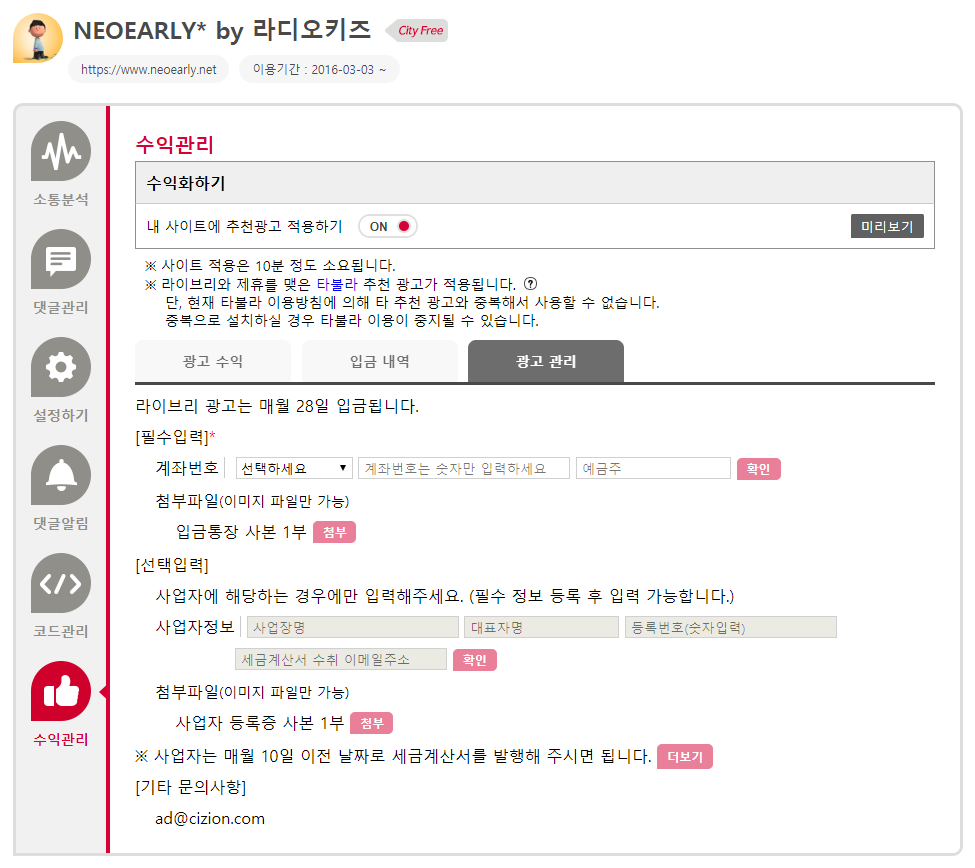 ์ฌ๊ธฐ๊น์ง๋ง ํด๋ ํฐ์คํ ๋ฆฌ์ ๊ธฐ๋ณธ ๋๊ธ์์ ์์ฌ์ ๋ 2%๋ฅผ ์ฑ์์ฃผ๊ณ ์์ง๋ง, ๋ผ์ด๋ธ๋ฆฌ์๋ ํ๋ถ๋ผ(Taboola) ๊ด๊ณ ๋ ์ ์ฉ๋์ด ์์ด ๋ธ๋ก๊ทธ๋ฅผ ์ด์ฉํด ์์ต์ ๋ด๊ณ ์ถ์ ๋ถ๋ค์๊ฒ ๋ ๋ฐ๊ฐ์ด ์๋ฃจ์