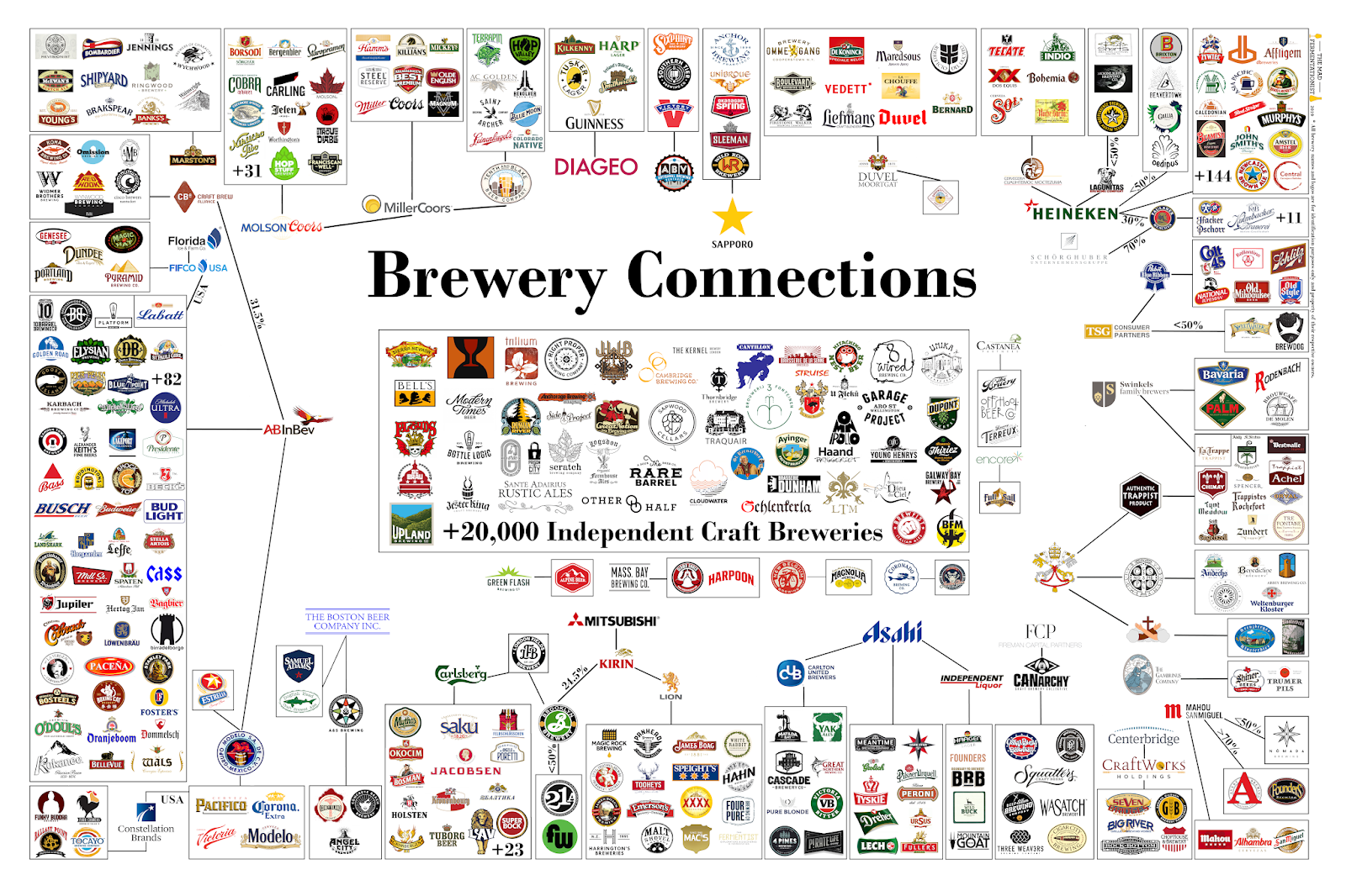 The newest version of the graphic can be ordered here! Most recent update, September 2019: --- On Friday I posted a visualization of the connections between the ownership of American breweries, both craft and macro. I was inspired by this graphic of Americ