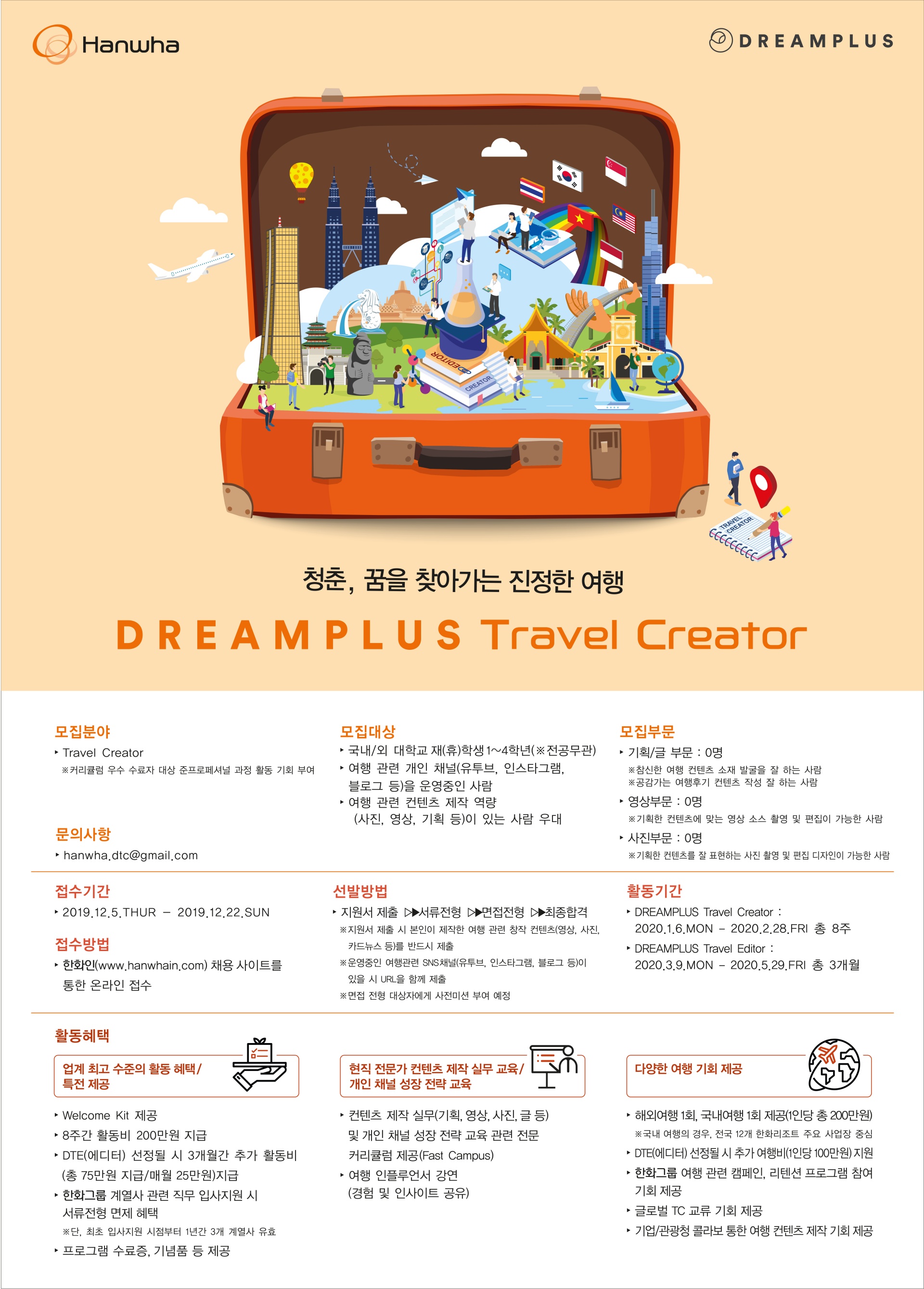 'ํ๊ณ ์ถ์ ์ฌํ์ ๋ง์๊ป ํ๋ฉด์ ๊ทธ๊ฑธ๋ก ์ฝํ ์ธ ๋ฅผ ๋ง๋ค์ด์ ๋์ ๋ฒ๊ณ ์ถ๋ค.' ์๋ง ๋ง์ ๋ถ๋ค์ด ๊ฟ๊พธ๋ ๋ชจ์ต์ด ์๋๊น ์ถ์๋ฐ์. ํ์ค์ ๊ทธ๋ ๊ฒ ๋ น๋กํ์ง ์์ง๋ง, ๊ฟ์ด ์๋ค๋ฉด ๊ทธ ๊ฟ๊ณผ ์ด์ ์ ๋ถ์ ๋ถ์ด๋ฉด ์ข๊ฒ ์ฃ . ํํ๊ทธ๋ฃน์ด ๊ทธ๋ฐ ๊ฟ์ ๊พธ๊ณ ์๋ ๋ํ์์ ๋์์ผ๋ก ์ฌํ ์ฝํ ์ธ ํฌ๋ฆฌ์์ดํฐ ์ธํด์ญ ํ๋ก๊ทธ๋จ์ธ ๋๋ฆผํ๋ฌ์ค ํธ๋๋ธ ํฌ๋ฆฌ์์ดํฐ(DREAMPLUS Travel Creator)๋ฅผ ์ฌํด์๋ ์ด์ํ๋ค๊ณ ํ๋๋ผ๊ณ ์.