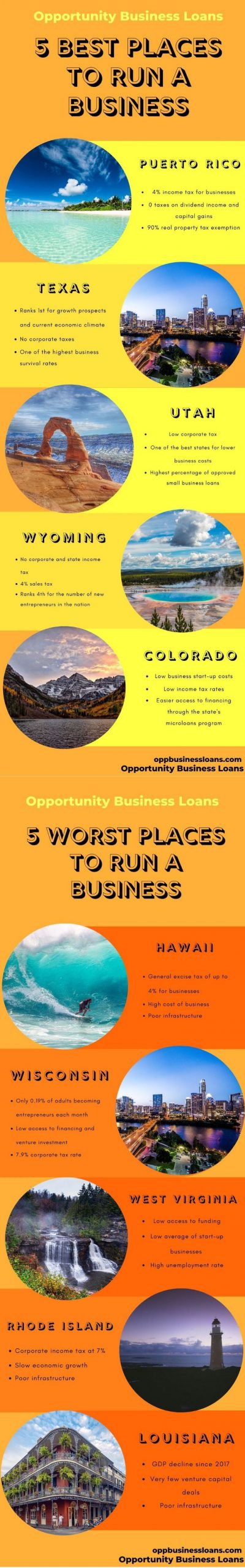 λ―Έκ΅μμ μ¬μ νκΈ° κ°μ₯ μ’μ 5 κ³³, μ¬μ νκΈ° κ°μ₯ λμ 5 κ³³...?! μΈν¬κ·Έλν½ by Oppbusinessloans.com...