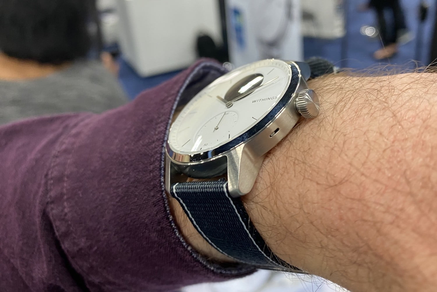 ํ๋์ค์ ์๋ฉ์ค(Withings)๊ฐ ์๋ก ์ ๋ณด์ธ ํ์ด๋ธ๋ฆฌ๋ ์ค๋งํธ์์น ์ค์บ์์น(ScanWatch)๋ ๊ทธ๋ ๊ฒ ํนํ ๊ธฐ๋ฅ์ ์ง์คํ๊ณ ์๋๋ฐ์. ์ค์บ์์น๋ผ๋ ์ด๋ฆ์ฒ๋ผ ์ฌ์ฉ์๋ฅผ ์ค์บํ ์ด ์ค๋งํธ์์น๊ฐ ์ฃผ๋ชฉํ ๊ฑด ์ฌ์ฉ์์ ๊ฑด๊ฐ์