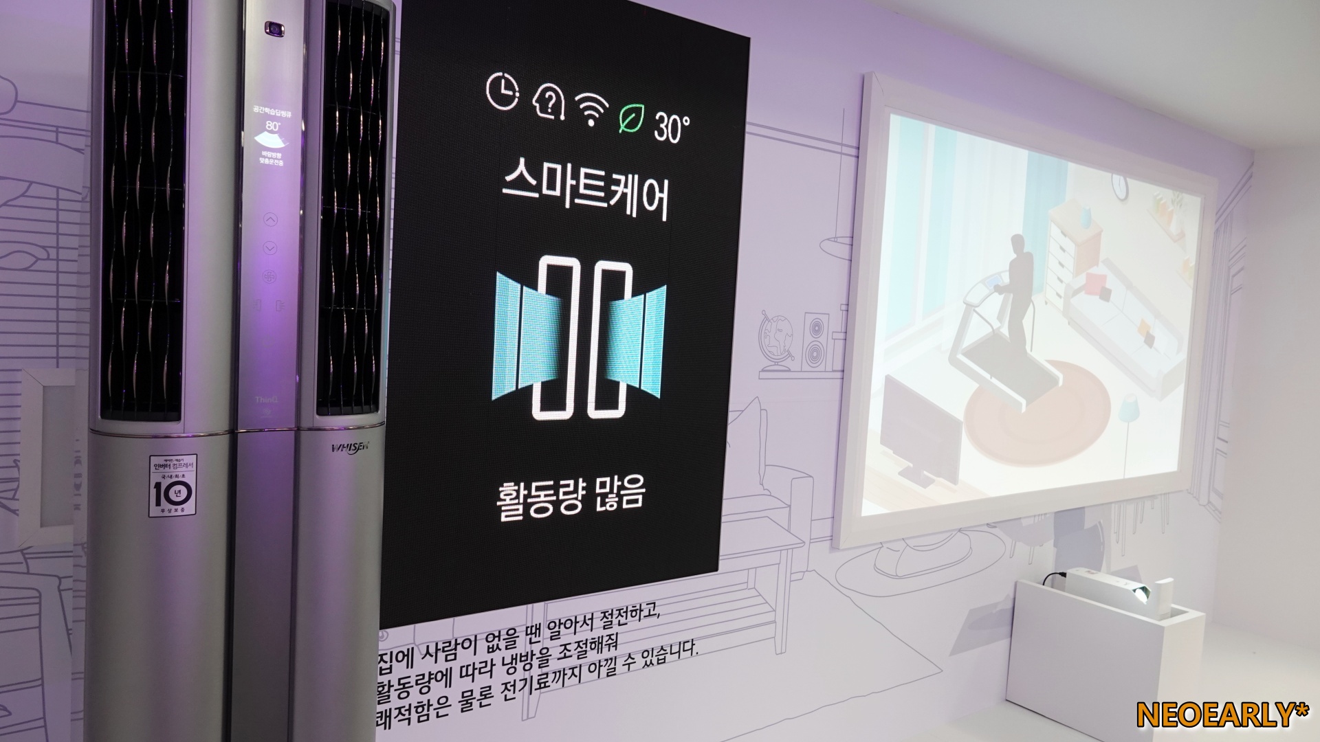 ์ ๋ณด๊ฑฐ๋ ์ ์ ์๋ ๊ฒ์ฒ๋ผ ์ฌ๊ณ ์๋ค๋ฉด ์๋์ ์ผ๋ก ์ฝํ ํ๋์ผ๋ก ํจ์จ์ ์ผ๋ก ์๋ํ๋๋ก ํ๋ค๋ ๊ฑด๋ฐ... ์ผ์ผ์ด ์จ๋๋ฅผ ์กฐ์ ํ๊ณ ํ๋์ ๋ณ๊ฒฝํ์ง ์์๋ ์์์ ์ฑ๊ฒจ์ค๋ค๋ ์ผ๋จ ํธํ๊ฒ ๋ค ์ถ๋ค์. ์ฌ์ง์ด ๋ฏธ์ธ๋จผ์ง๊ฐ ๋ง์ผ๋ฉด ๊ทธ๊ฒ๋ ์๋ ค์ฃผ๊ณ ๋๋งค๊ฐ ๋ถ์กฑํด์ง๊ฑฐ๋ ๊ทน์ธ ํํฐ๋ฅผ ์ฒญ์ํด์ผ ํ ํ์๊ฐ ์์ ๊ฒฝ์ฐ ์ฐ๋๋ LG ์ฝํ ์ฑ์ผ๋ก ์๋ ค์ฃผ๋ ํ๋ก์กํฐ๋ธ ์๋น์ค๊น์ง ์ ์ฉ๋์ด ์์ด ๊ด๋ฆฌ๋ถํฐ ์ฌ์ฉ ์ ๋ฐ์์ ์ธ๊ณต์ง๋ฅ์ ๋์์ ๋ฐ์ ์ ์๋ค๊ณ ํฉ๋๋ค.