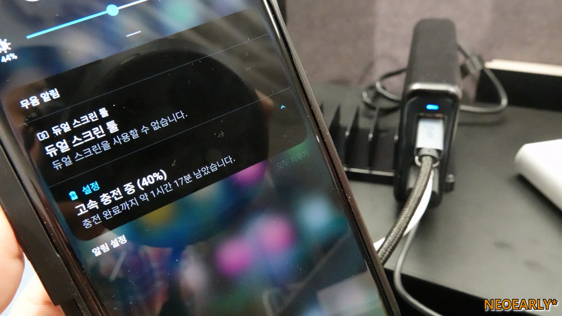๋์ฉ๋ ๊ณ ์ ๋ฉํฐ ์ถฉ์ ๊ธฐ๋ฅผ ํ๋ฐฉํ๊ณ ์๋ ๋งํผ ๊ฐ์ฑ์ถฉ์ 100์ ์์๋๋ก ์ถฉ์ ์๋๋ ๋นจ๋์ต๋๋ค. ์ผ๋ฐ ์ถฉ์ ๊ธฐ์ ๋ฌ๋ฆฌ LG V50์ ์ฐ๊ฒฐํ์ ๋๋ ๊ณ ์์ถฉ์ ์ค์์ ๋ฐ๋ก ํ์ธํ ์ ์์๊ณ , ๊ฐค๋ญ์ ๋