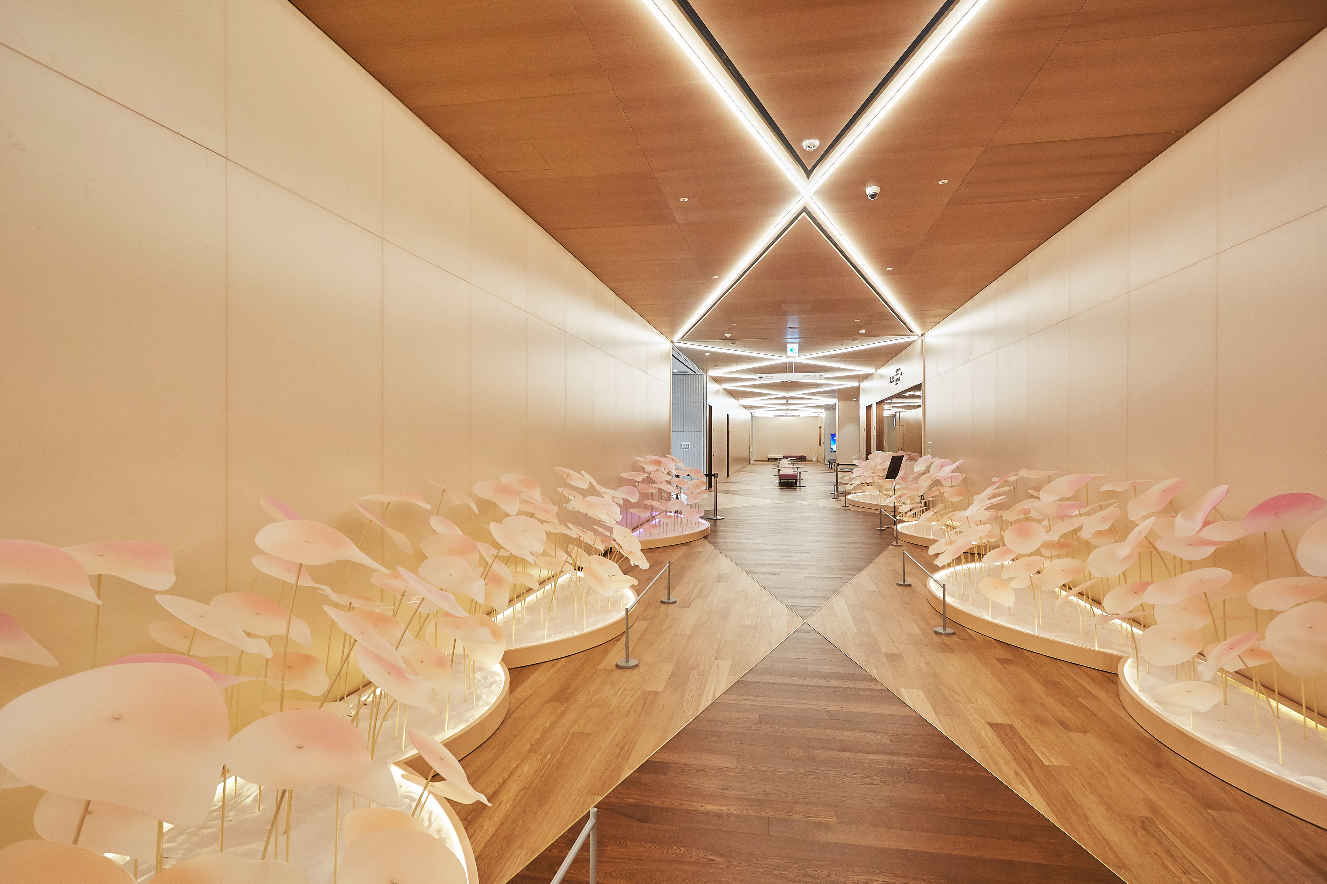์๋ฐฑ ๊ฐ์ ์๊ธฐ๋ฅ ๋ชจ๋์ ํตํด ๋ค์ํ ๋น์ ์๊ฐ์ ์ฐ์ถํ๋ค๋ 1์ธต์ ์ค๋ก๋ผ ๋์คํ๋ ์ด, ๊ตฌ๋ฆ์ ํ์ํํ ๋์คํ๋ ์ด๋ก ๋น๊ณผ ๊ตฌ๋ฆ์ ์กฐํ๋ฅผ ๋ณด์ฌ์ฃผ๋ 4์ธต ํ๋กํ