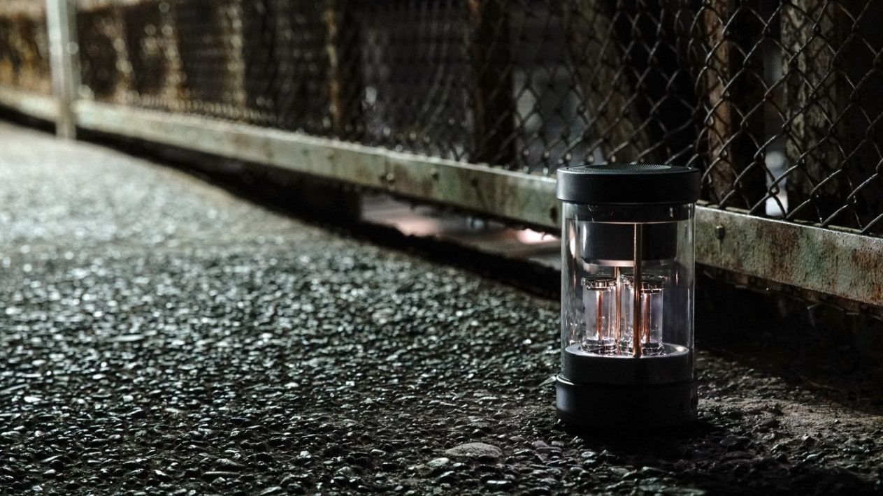77mm ํ๋ ์ธ์ง ์ ๋์ ์ฌ์ฉํ ๋ฌด์งํฅ์ฑ ์คํผ์ปค๋ก ๋ด๋ถ์ LED๋ฅผ ๋ด์ฅํ ์ง๊ณต๊ด์ฒ๋ผ ๋ณด์ด๋ ์ํตํ ์กฐ๋ช