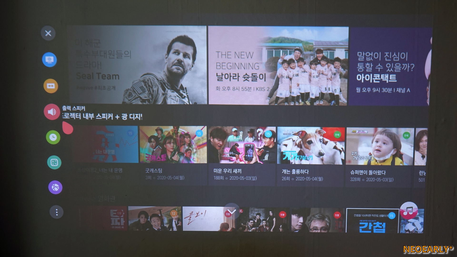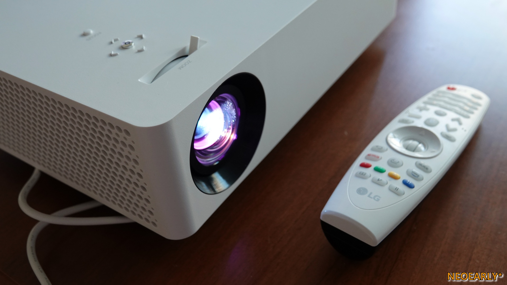 ๋์์ 1,500๊ฐ์ ์ด๋ถ์ ๋ฐํ ๋งํผ์ ๋ฐ๊ธฐ๋ฅผ ์๋ํ๋ LG ์๋ค๋น 4K AI ThinQ HU70LA. ์์ ์ ์จ๋ณธ ๊ฐ์ ์ฉ ํ๋ก์ ํฐ๋ค์ด ์๋์ ์ผ๋ก ๋ ๋ฐ์๊ธฐ์ ์ด ๋