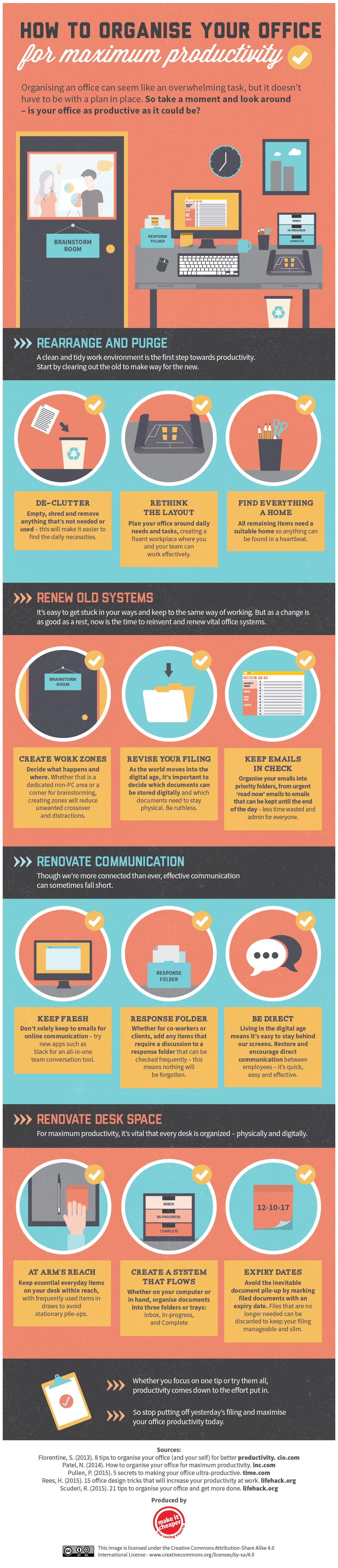Organising your office to increase productivity Organisation is key to running a successful business. From your office insurance package, to your day-to-day operations, everything must be organised and optimised to get the most out of your business, and sa