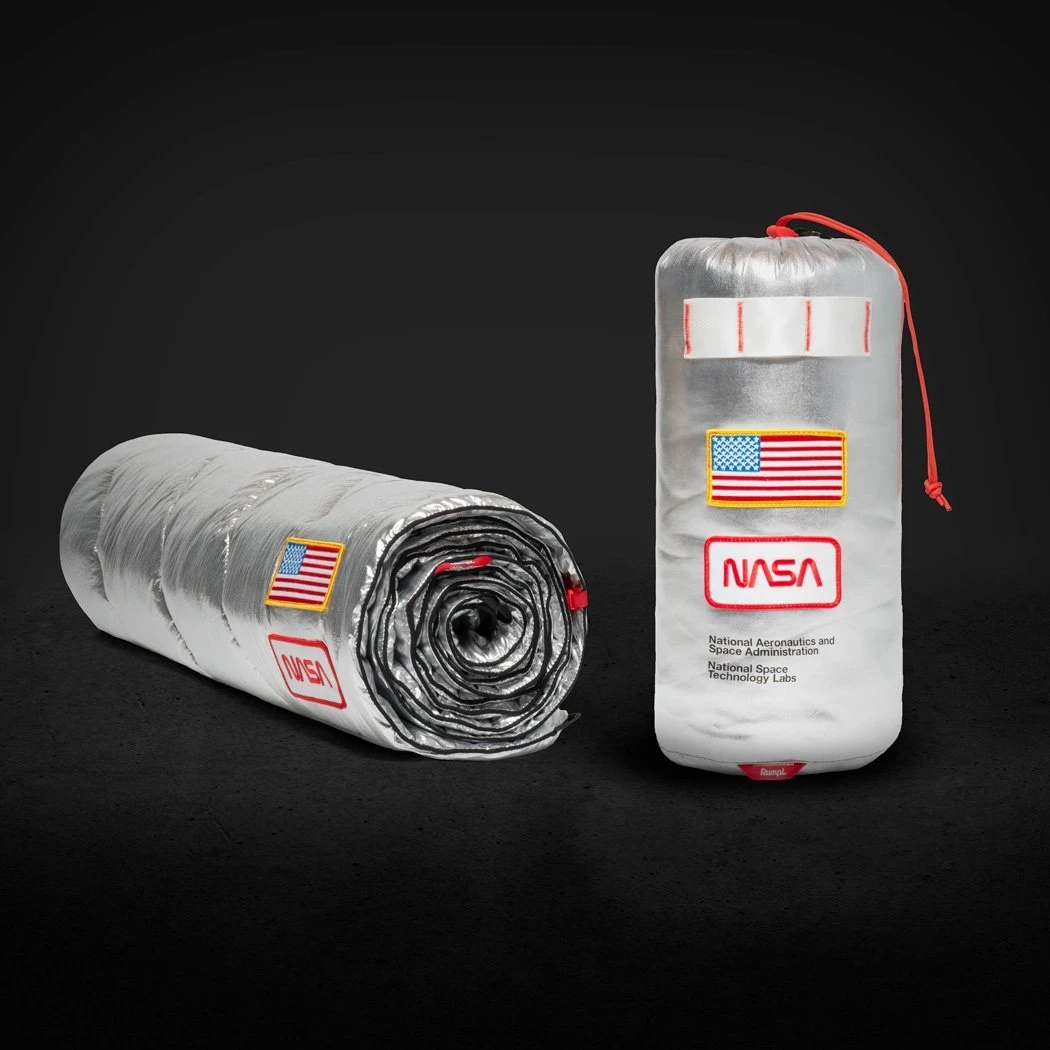 The Rumpl NASA Collection celebrates the 50th anniversary of the Apollo 13 mission. Featuring a reflective Original Puffy NASA blanket, a space suit NanoLoft® Puffy NASA blanket, and a NanoLoft® Puffy NASA poncho. Limited Edition.