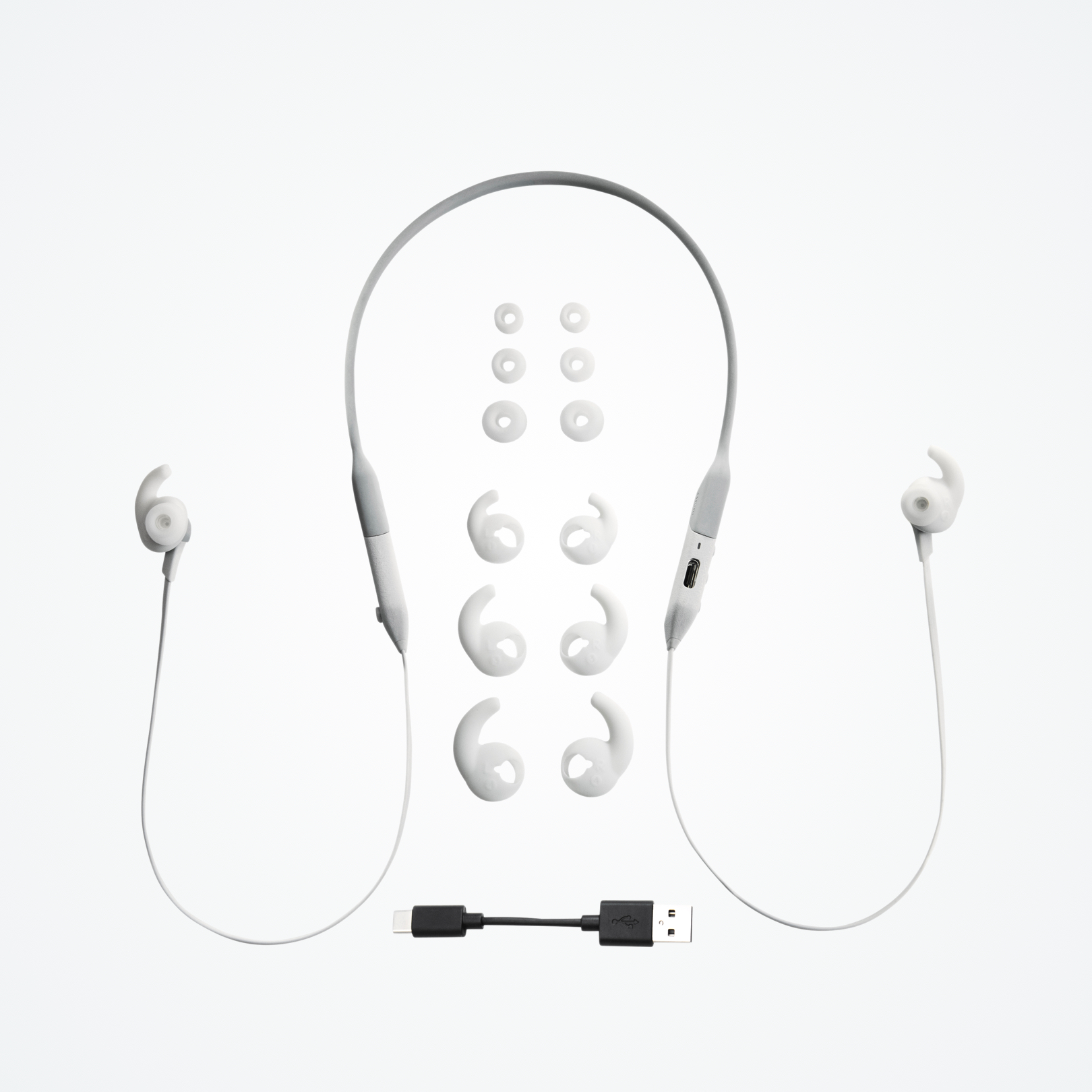 The wireless RPD-01 headphone keeps up with a life grounded in sports. They come with four different sizes of tips and wings, so you can find the perfect fit.