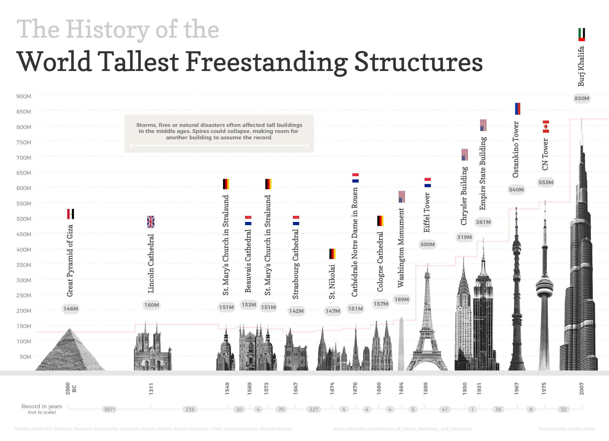 Learn which freestanding structure had the title of "world's tallest building" at any given point during the history of civilization!