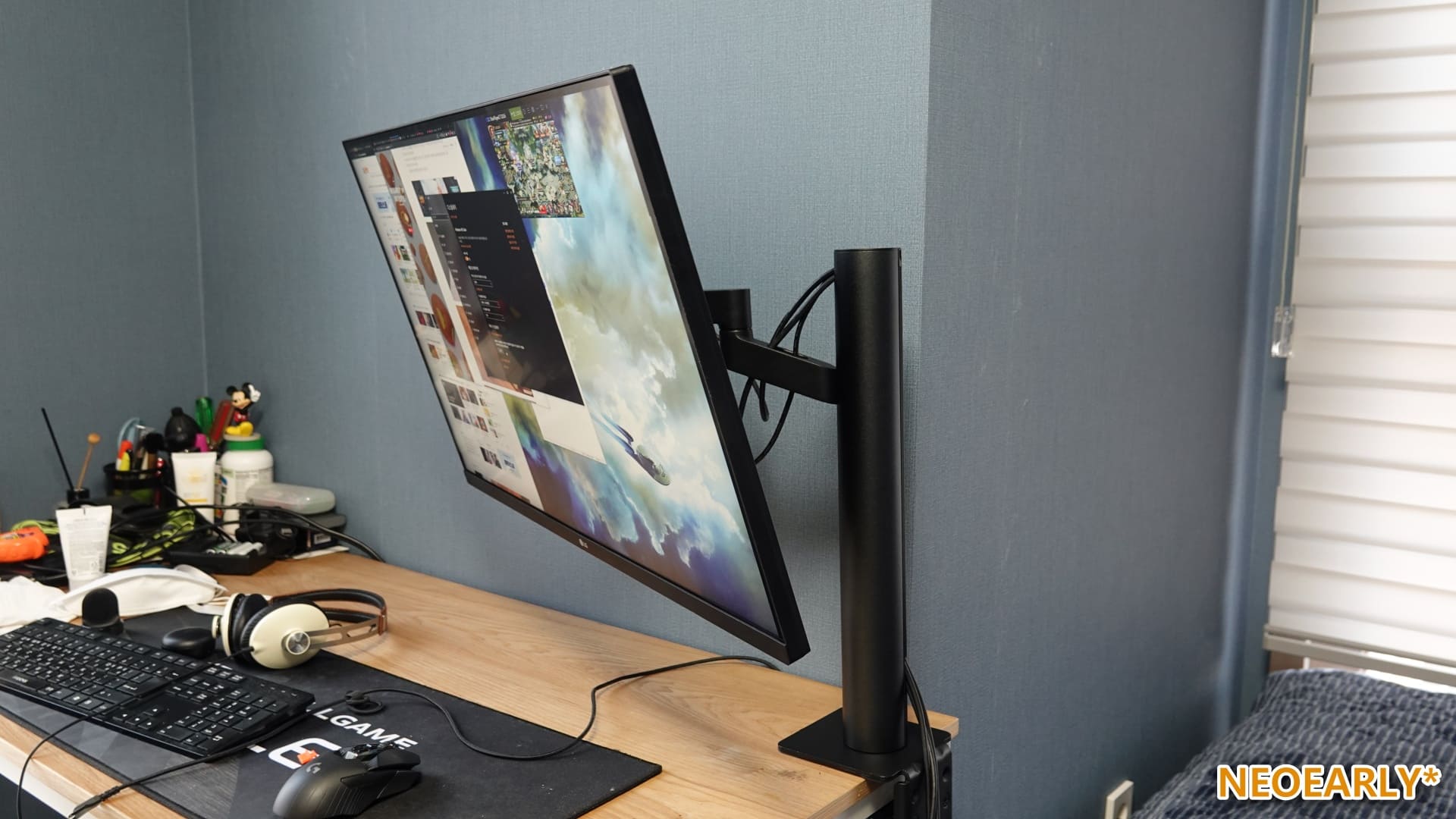 ์ œ๊ฐ€ ๊ธฐ์กด์— ์“ฐ๋˜ ๋ชจ๋‹ˆํ„ฐ๋Š” 43์ธ์น˜ ๋Œ€ํ˜•์ด๋ผ ํฐ ๊ฑด ์ข‹์€๋ฐ ๊ทธ๋ƒฅ ์ผ๋ฐ˜ ์Šคํƒ ๋“œ TV ๋งˆ๋ƒฅ ๊ณ ์ •์œผ๋กœ๋งŒ ์“ฐ๊ณ  ์žˆ์—ˆ๊ฑฐ๋“ ์š”. ์ฑ…์ƒ ์ ˆ๋ฐ˜ ๊ฐ€๊นŒ์ด ๊ณต๊ฐ„์„ ์ ์œ ํ•˜๊ณ  ์žˆ๋Š” ๊ฑด ๋ฌผ๋ก ์ด๊ณ  ๋‚ด๊ฐ€ ์›ํ•˜๋Š” ๊ฐ๋„๋กœ ํ™”๋ฉด์„ ์›€์ง์ด๊ณ  ์‹ถ๋‹ค๋Š” ์•„์ฃผ ๊ธฐ๋ณธ์ ์ธ ์š•๊ตฌ๋„ ํ•ด๊ฒฐํ•  ์ˆ˜ ์—†๋Š” ๊ทธ๋Ÿฐ ๋…€์„์ด์—ˆ๋Š”๋ฐ... 32UN880์€ ๊ทธ๋Ÿฐ ์ธก๋ฉด์—์„œ ์ž์œ ๋กญ๋”๋ผ๊ณ ์š”. ์ผ๋ฐ˜์ ์ธ ๋ชจ๋‹ˆํ„ฐ๋Š” ๊ณ ์ •๋œ ๊ณณ์— ๋‘๊ฒŒ ๋งˆ๋ จ์ด์ง€๋งŒ, ์—…๋ฌด ๋“ฑ์„ ์œ„ํ•ด ํ™”๋ฉด์„ ๋‹ค๋ฅธ ์ง์›๊ณผ ๊ณต์œ ํ•ด์•ผ ํ•˜๋Š” ์ƒํ™ฉ์ด๋ผ๋ฉด ๋‹ค๊ด€์ ˆ ํžŒ์ง€ ๊ตฌ์กฐ๊ฐ€ ์ฃผ๋Š” ์ด ์œ ์—ฐํ•จ์ด ํ›จ์”ฌ ๋” ๋‹๋ณด์ผ ๊ฑฐ๋ผ๋Š” ์ƒ๊ฐ์ด ๋“ค์—ˆ๋Š”๋ฐ ์ง‘์—์„œ ์ž ์‹œ ์จ๋ณด๋‹ˆ ๋น„๋‹จ ํšŒ์‚ฌ ๊ฐ™์€ ์—…๋ฌด ๊ณต๊ฐ„์ด ์•„๋‹ˆ๋ผ๋„ ๋ชจ๋‹ˆํ„ฐ๋ฅผ ์ข€ ๋” ๋‹ค์–‘ํ•˜๊ฒŒ ํ™œ์šฉํ•  ์ˆ˜ ์žˆ๊ฒ ๋”๋ผ๊ณ ์š”.