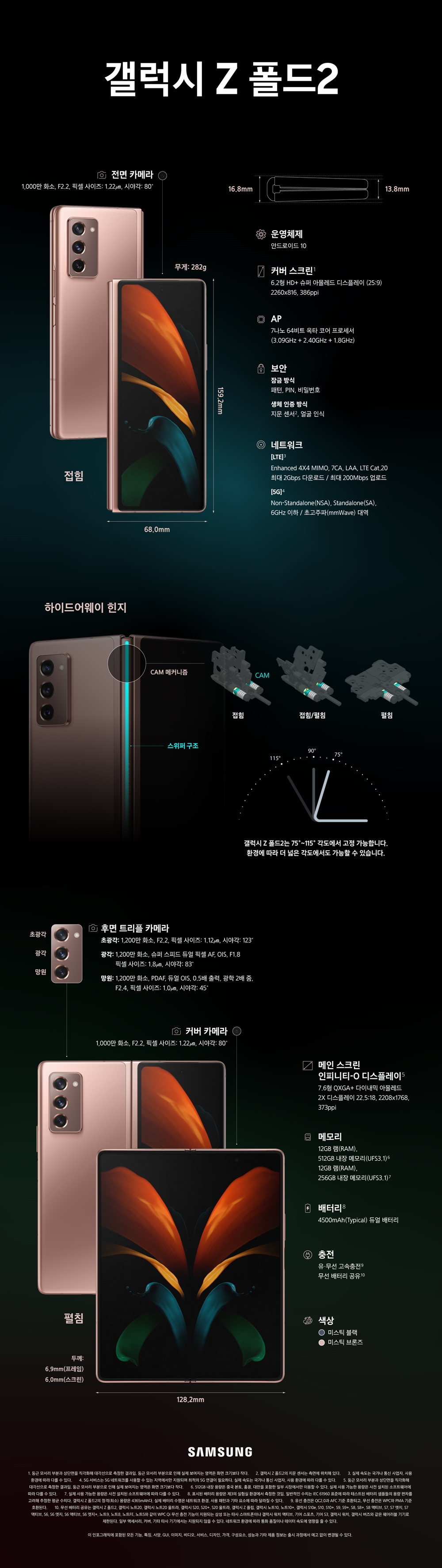 ๋๋๊ณค 865+ ๋ชจ๋ฐ์ผ ํ๋ซํผ, 12GB ๋จ, 256/512GB ์ ์ฅ ๊ณต๊ฐ, ์ปค๋ฒ ์นด๋ฉ๋ผ์ ์ ๋ฉด ์นด๋ฉ๋ผ๋ ๊ฐ๊ฐ 1,000๋ง(F/2.2, ๊ด๊ฐ) ํ์, ํ๋ฉด ์นด๋ฉ๋ผ๋ 1,200๋ง(F/1.8, ๊ด๊ฐ, OIS)+1,200๋ง(F/2.4, ๋ง์, 2๋ฐฐ ๊ดํ์ค, OIS)+1,200๋ง(F/2.2, 123๋ ์ด๊ด๊ฐ) ํ์ ํธ๋ฆฌํ ์นด๋ฉ๋ผ, ์์ดํ์ด 6, ๋ธ๋ฃจํฌ์ค 5, ์ธก๋ฉด ์ง๋ฌธ ์ธ์, 4,500mAh ์ผ์ฒดํ ๋ฐฐํฐ๋ฆฌ(25W ๊ธ์ ์ถฉ์ , 11W ๊ธ์ ๋ฌด์ ์ถฉ์ ), ์ UI 2.5(์๋๋ก์ด๋ 10) ๋ฑ์ ์ฌ์์ ๊ฐ๊ณ ์๋๋ฐ์.