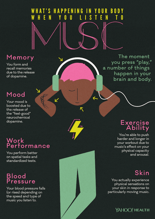 “The effect of music on the brain or body depends in part on its genre,” Frank A. Russo, PhD, associate professor of psychology at Ryerson University, tells Yahoo Health. Research published in the Journal of Positive Psychology shows that listening to