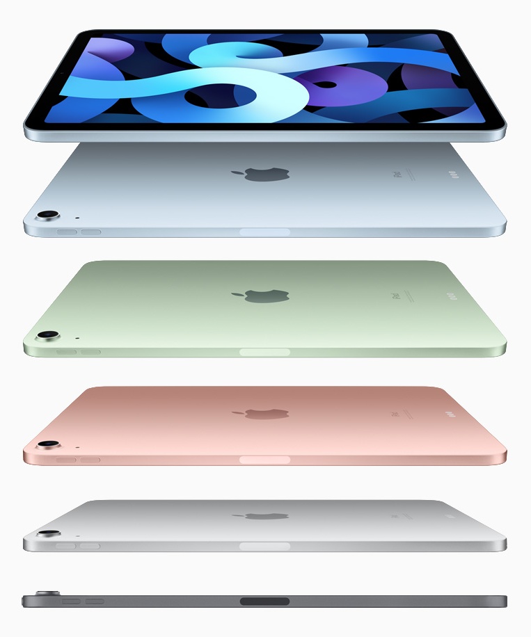 ๋ค์ฏ ๊ฐ์ง ์์์ผ๋ก ์ ๊ณต๋๋ ์๋ก์ด iPad Air๋ ์ ๋ฉด ํ๋ฉด ๋์์ธ, 10.9ํ Liquid Retina ๋์คํ๋ ์ด, A14 Bionic์ ํ์ฌํ๊ณ ์์ผ๋ฉฐ, ๋ค์ํ ์ก์ธ์๋ฆฌ๋ฅผ ์ง์ํฉ๋๋ค.