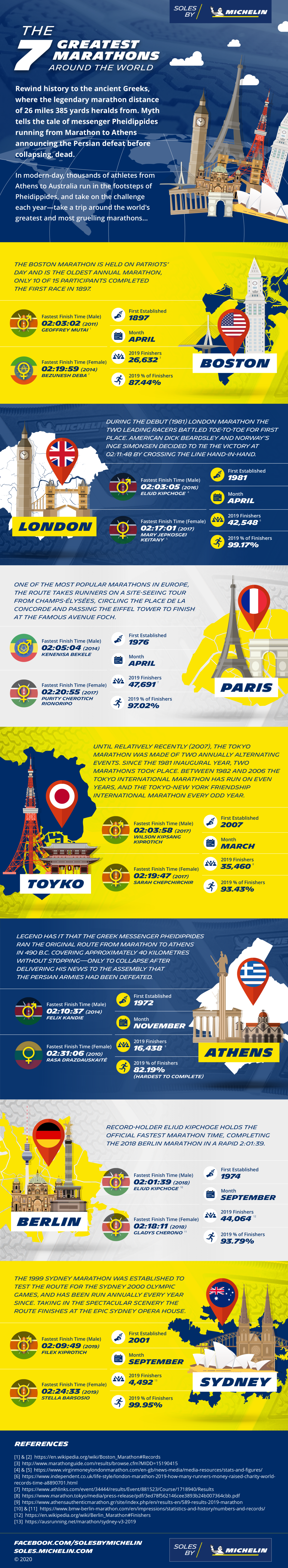 Explore the key statistics of 7 great marathons from around the globe.
