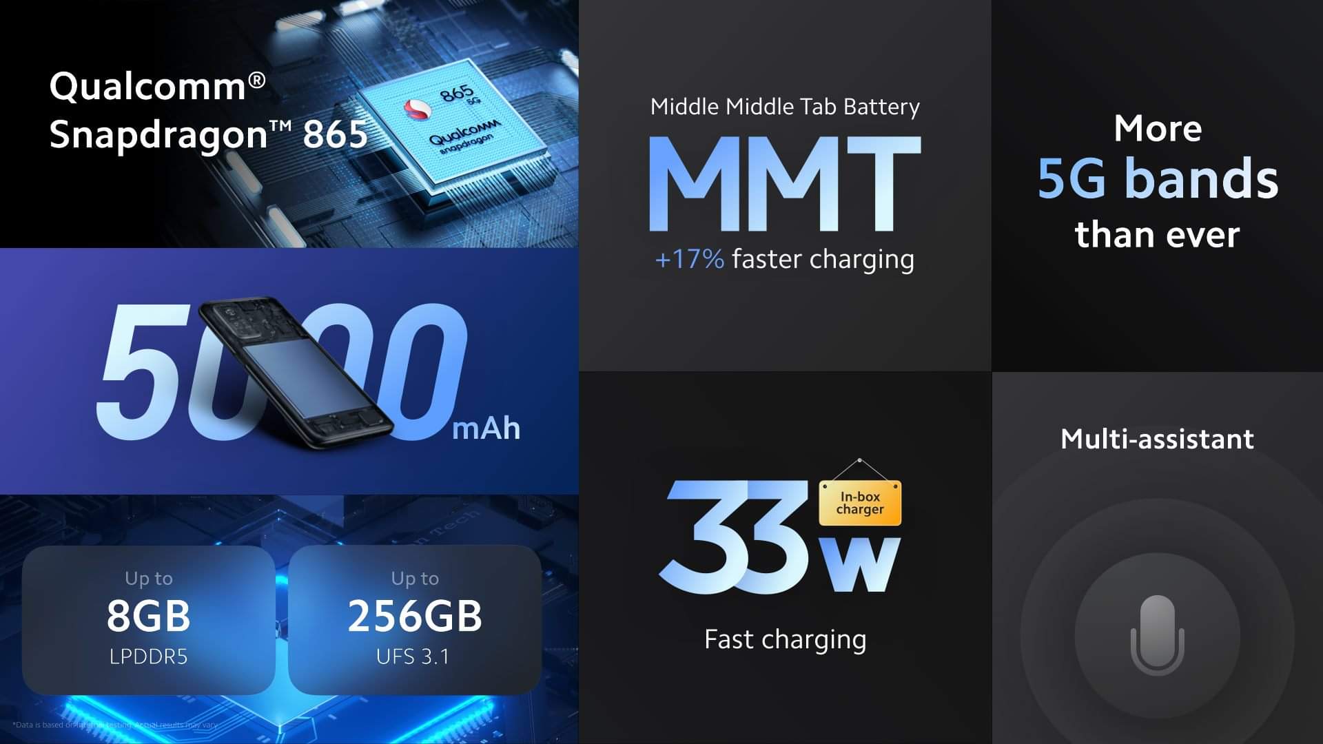 ํ—ˆ๋ฆฌ๋ฅผ ๋งก์„ ๋ฏธ 10T 5G(Mi 10T 5G)๋Š” 144Hz๋ฅผ ์ง€์›ํ•˜๋Š” 6.67์ธ์น˜ ํ’€ HD+(1080 x 2400) IPS LCD ํ„ฐ์น˜ ์Šคํฌ๋ฆฐ, ํ€„์ปด ์Šค๋ƒ…๋“œ๋ž˜๊ณค 865 ๋ชจ๋ฐ”์ผ ํ”Œ๋žซํผ, 6/8GB ๋žจ, 128GB ์ €์žฅ ๊ณต๊ฐ„, ์ „๋ฉด 2,000๋งŒ(F/2.2, ๊ด‘๊ฐ) ํ™”์†Œ/ํ›„๋ฉด 6,400๋งŒ(F/1.9, ๊ด‘๊ฐ)+1,300๋งŒ(F/2.4, 123๋„ ์ดˆ๊ด‘๊ฐ)+500๋งŒ(F/2.4, ์ ‘์‚ฌ) ํ™”์†Œ ํŠธ๋ฆฌํ”Œ ์นด๋ฉ”๋ผ, ์™€์ดํŒŒ์ด 6, ๋ธ”๋ฃจํˆฌ์Šค 5.1, ์ธก๋ฉด ์ง€๋ฌธ ์ธ์‹, HDR10+, 5,000mAh ์ผ์ฒดํ˜• ๋ฐฐํ„ฐ๋ฆฌ(33W ๊ธ‰์† ์ถฉ์ „), ๋ฏธUI 12(์•ˆ๋“œ๋กœ์ด๋“œ 10) ๋“ฑ์˜ ์‚ฌ์–‘์„ ๊ฐ–๊ณ  ์žˆ๊ณ , ๊ฐ€๊ฒฉ์€ 6GB ๋ชจ๋ธ์ด 499์œ ๋กœ(69๋งŒ ์› ์ •๋„), 8GB ๋ชจ๋ธ์ด 549์œ ๋กœ(76๋งŒ ์› ์ •๋„)์ž…๋‹ˆ๋‹ค.