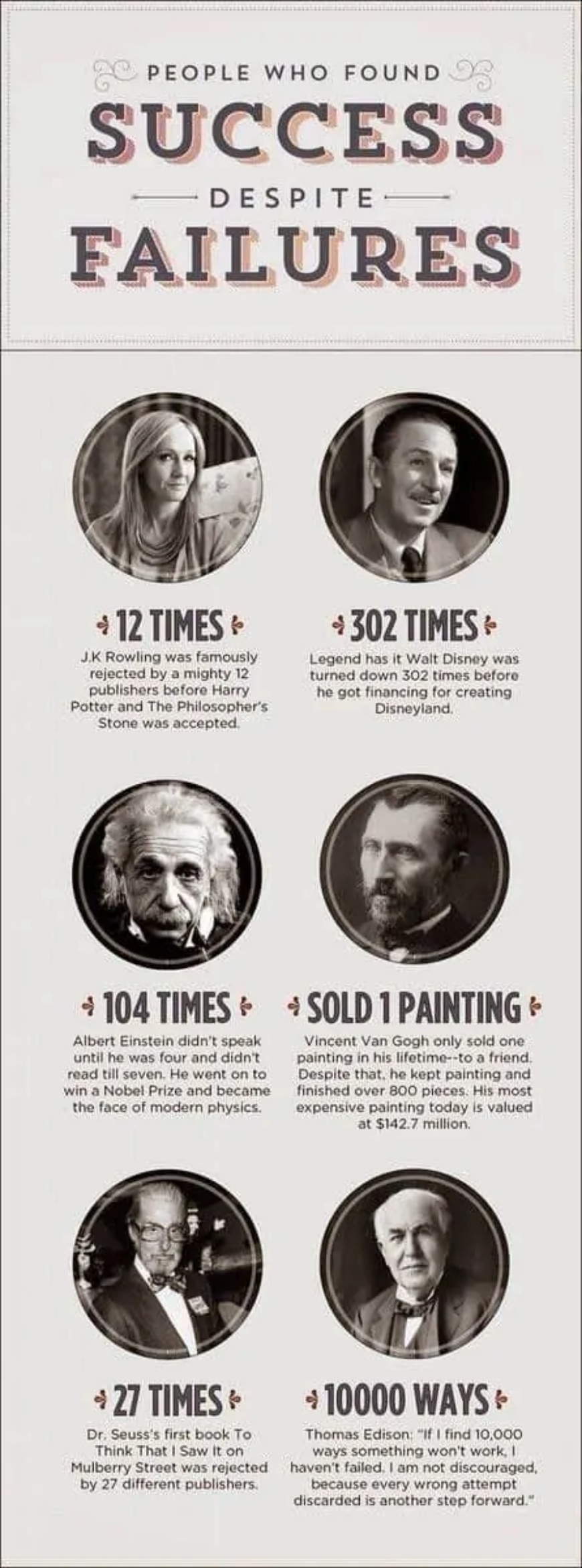 Try, try, and try again. If tales of the rich and famous are anything to go by some of the world’s most successful people would never have made it if the gatekeepers and financiers had their way.