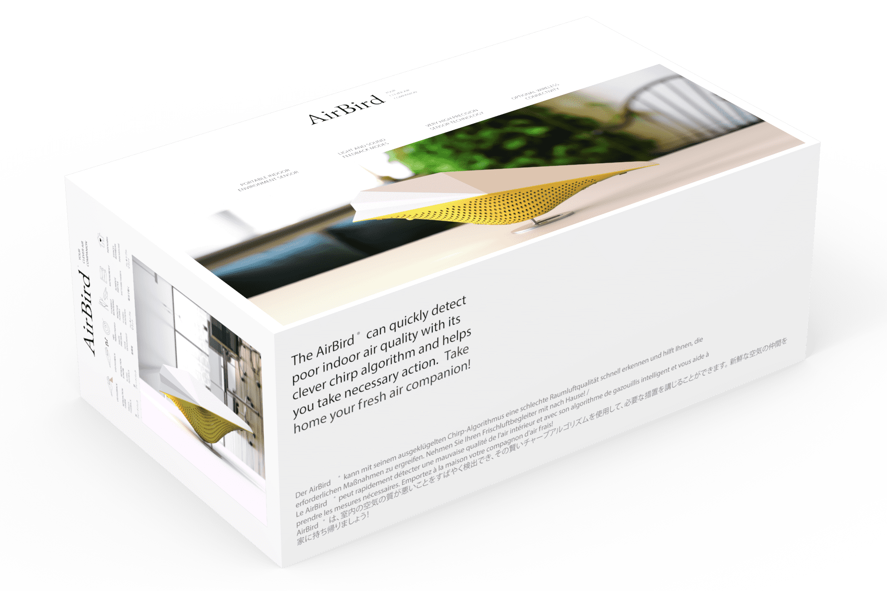AirBird® is an air quality sensor that proactively help you take care of your family's health and helps you form healthy air habits. AirBird® - Your Healthy Home Companion. AirBird® uses soft light and pleasant bird sounds to give you direct feedback. A