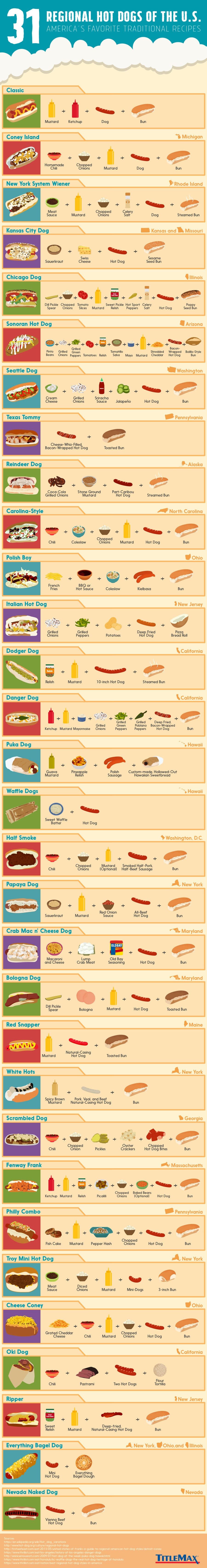 31 Famous Hot Dogs Across The U.S. | Daily Infographic