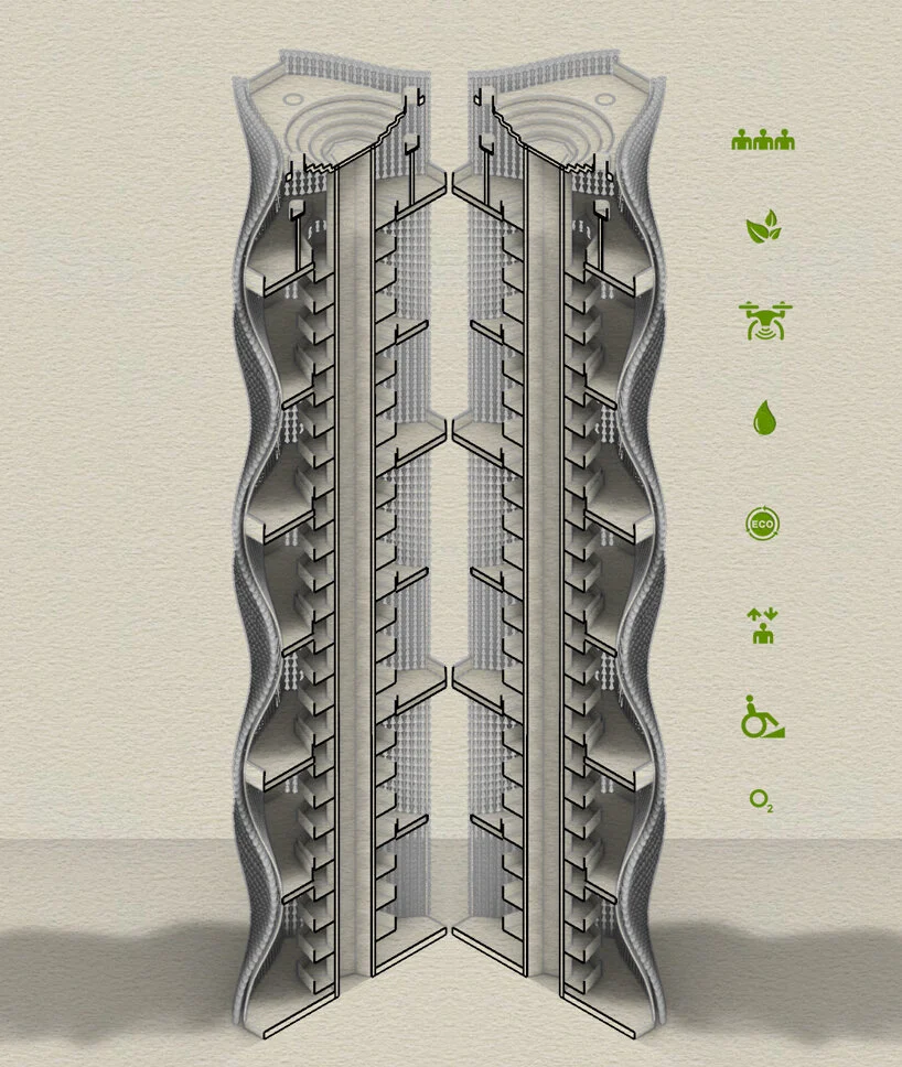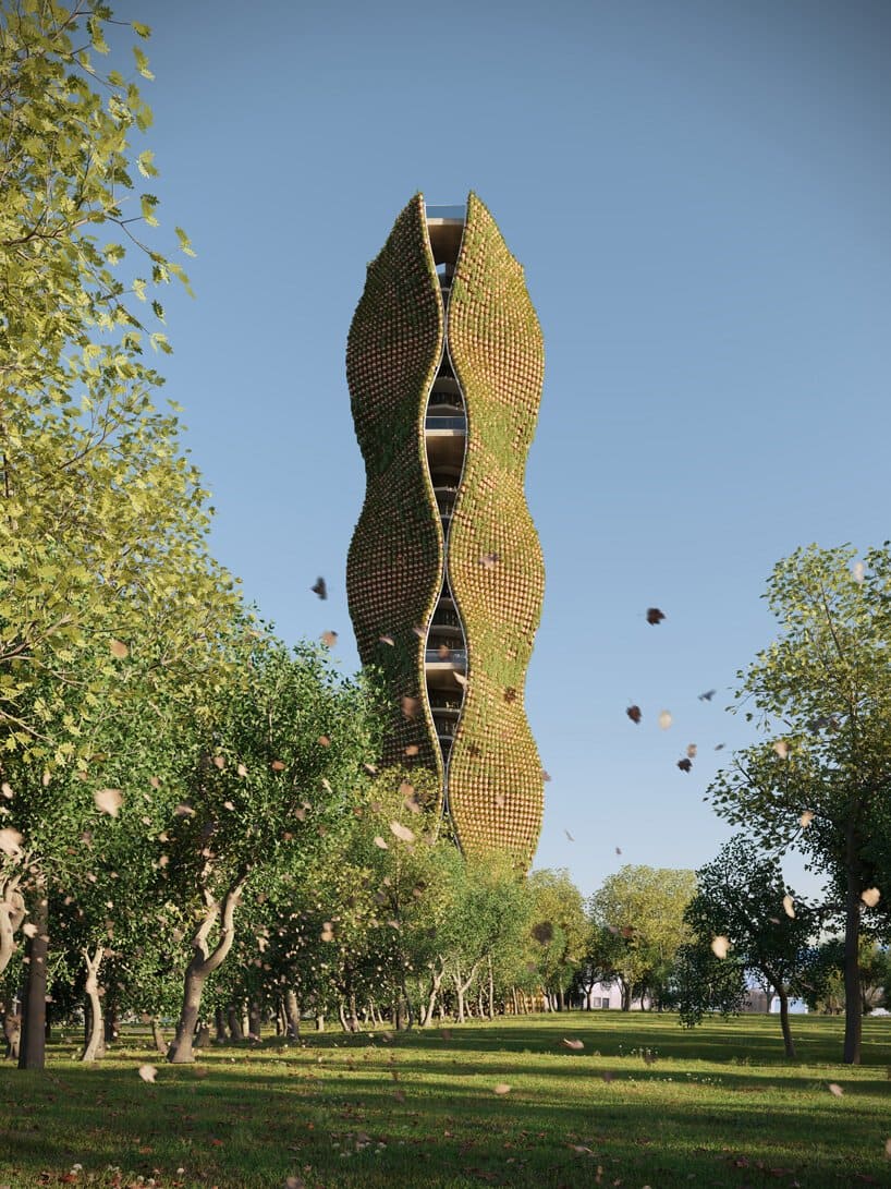 11,520 potted plants clad this rippling observatory tower concept by NUDES